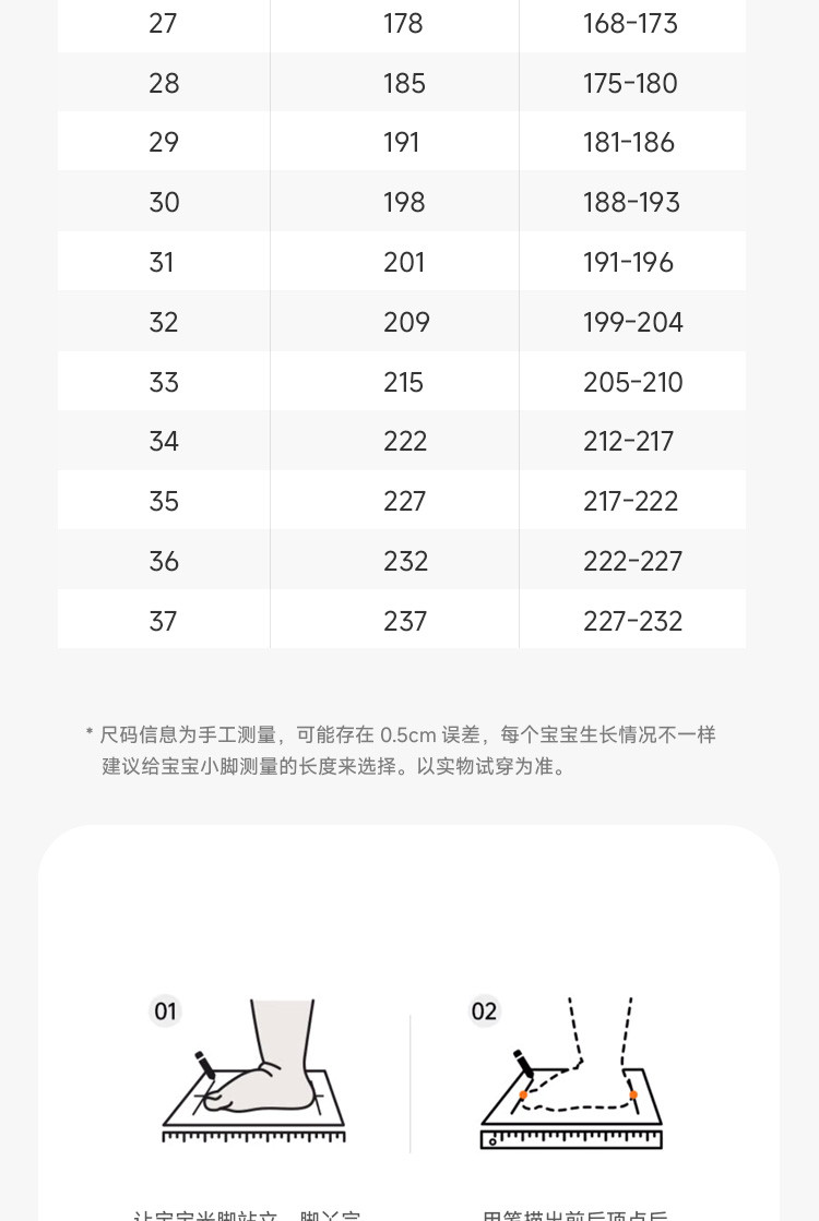 | 尺码 | 鞋内长(mm) | 脚长(mm) |