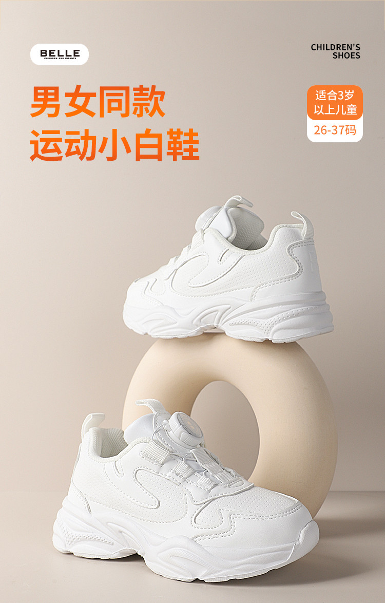 商品名称:【校园百搭小白鞋】开学季春款男女童休闲鞋旋转扣跑步鞋运动鞋 678091