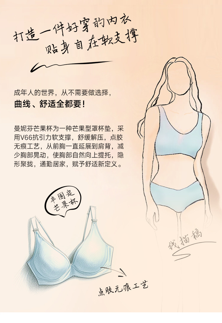 商品名称:【裸感无痕】芒果杯66号背心式文胸无钢圈内衣侧收聚拢上托 844571