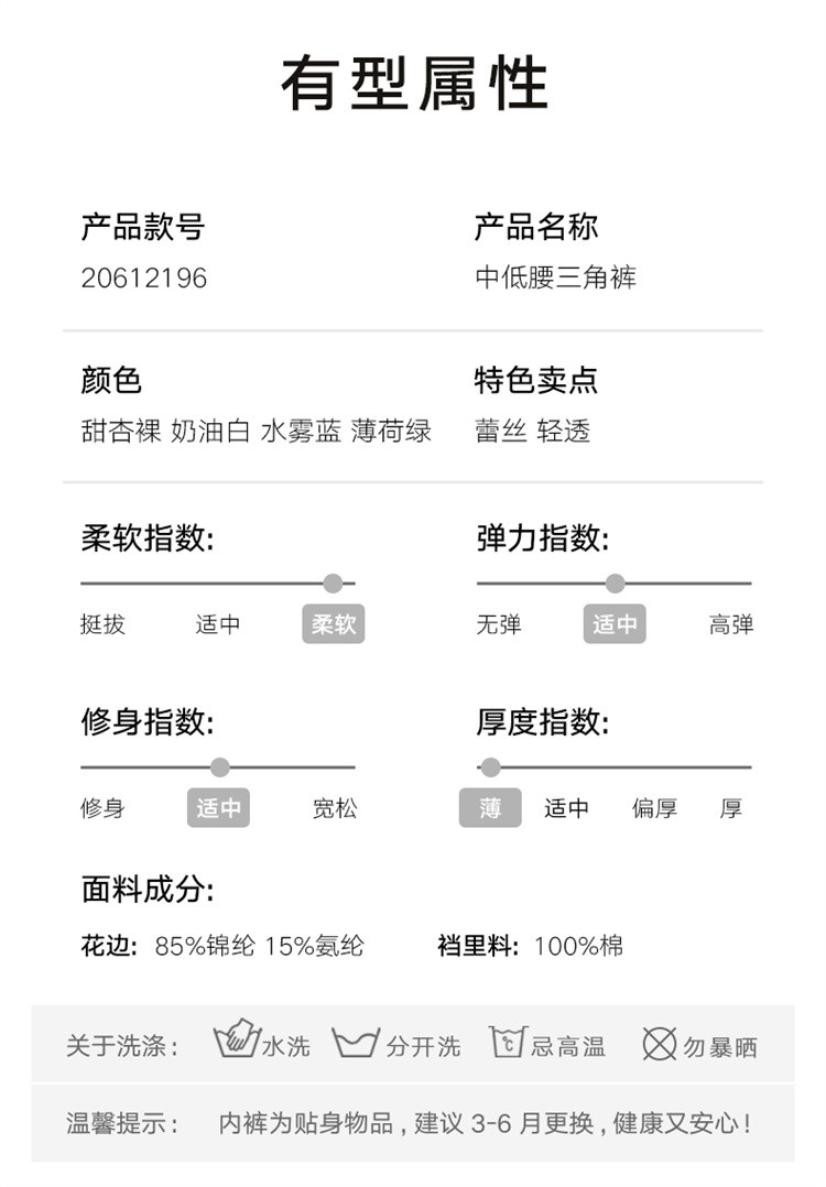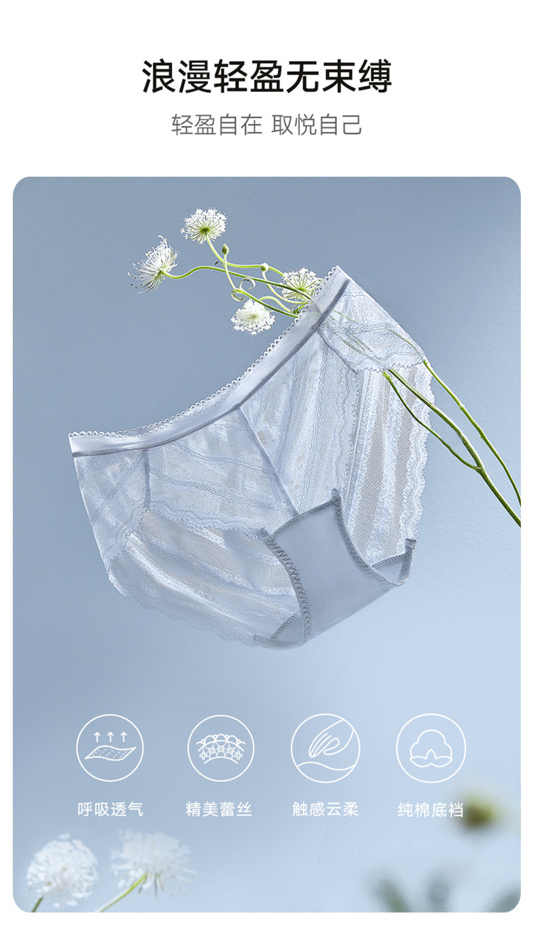 商品名称:轻盈透气无束缚中低腰三角裤不夹臀性感轻薄蕾丝内裤女棉质底裆 427739