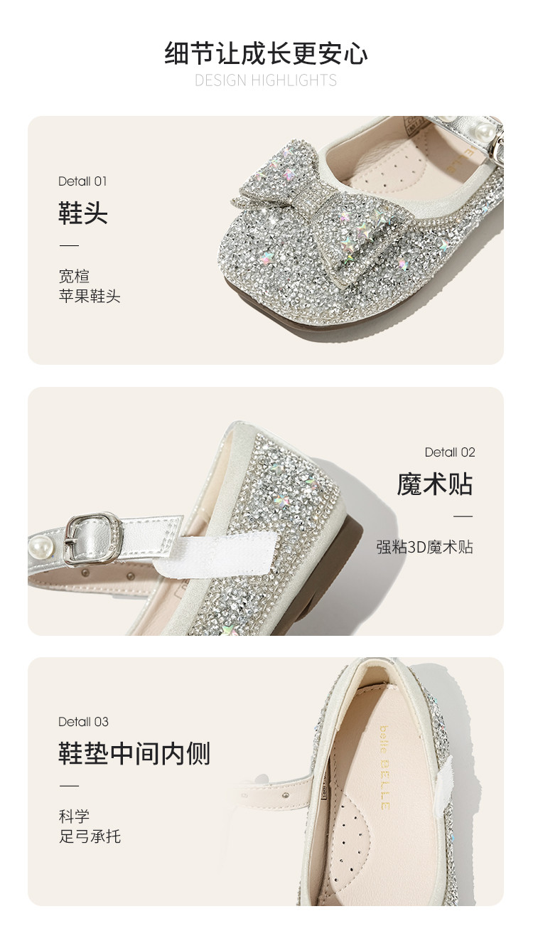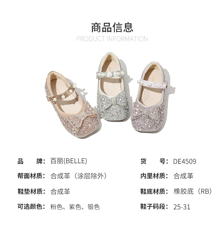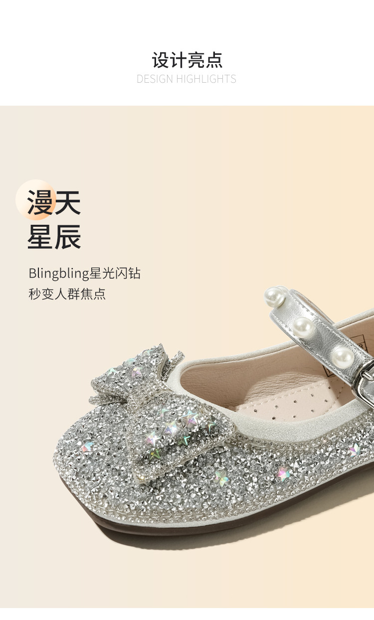商品名称:【彩钻珍珠蝴蝶结公主鞋】开学季春款女童皮鞋精致校园演出鞋单鞋 652491