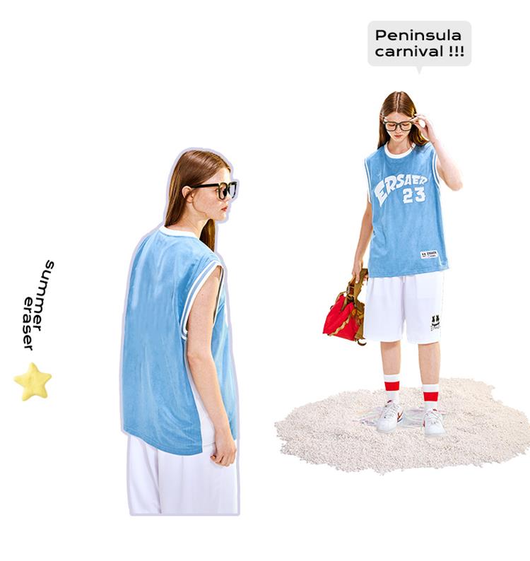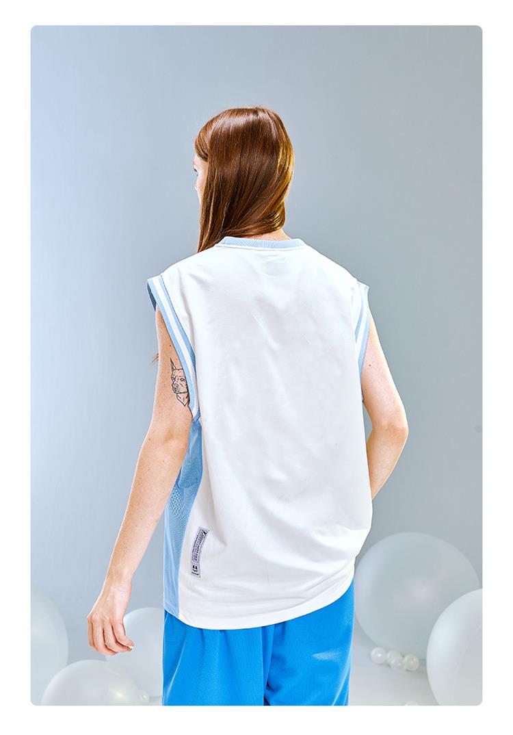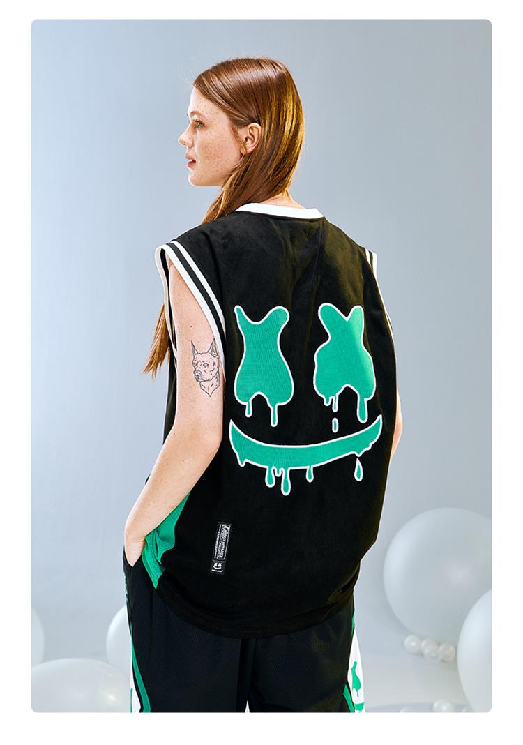 商品名称:笑脸背心撞色字母潮牌篮球运动宽松百搭夏季情侣无袖t恤男女同款 865431