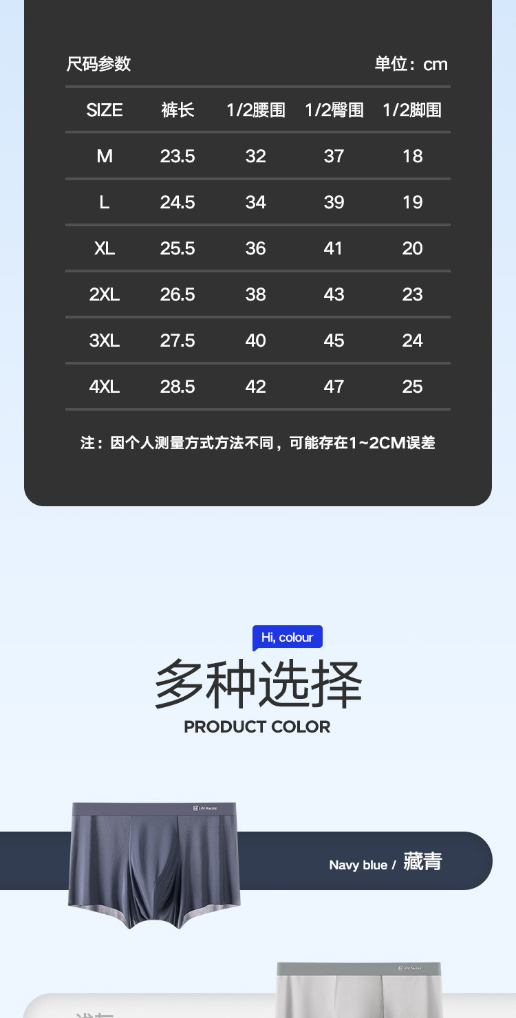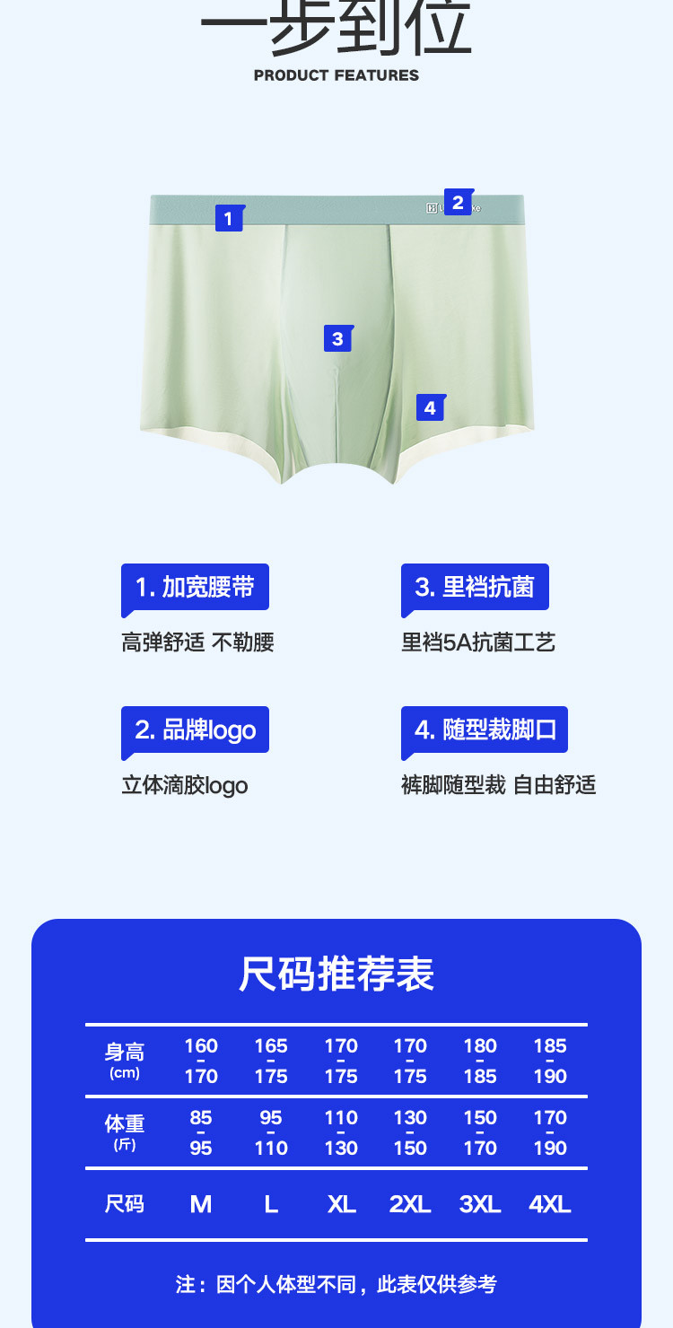 商品名称:【冰丝无痕 裸感透气】3条装男士内裤平角夏季薄款抑菌四角短裤 155034