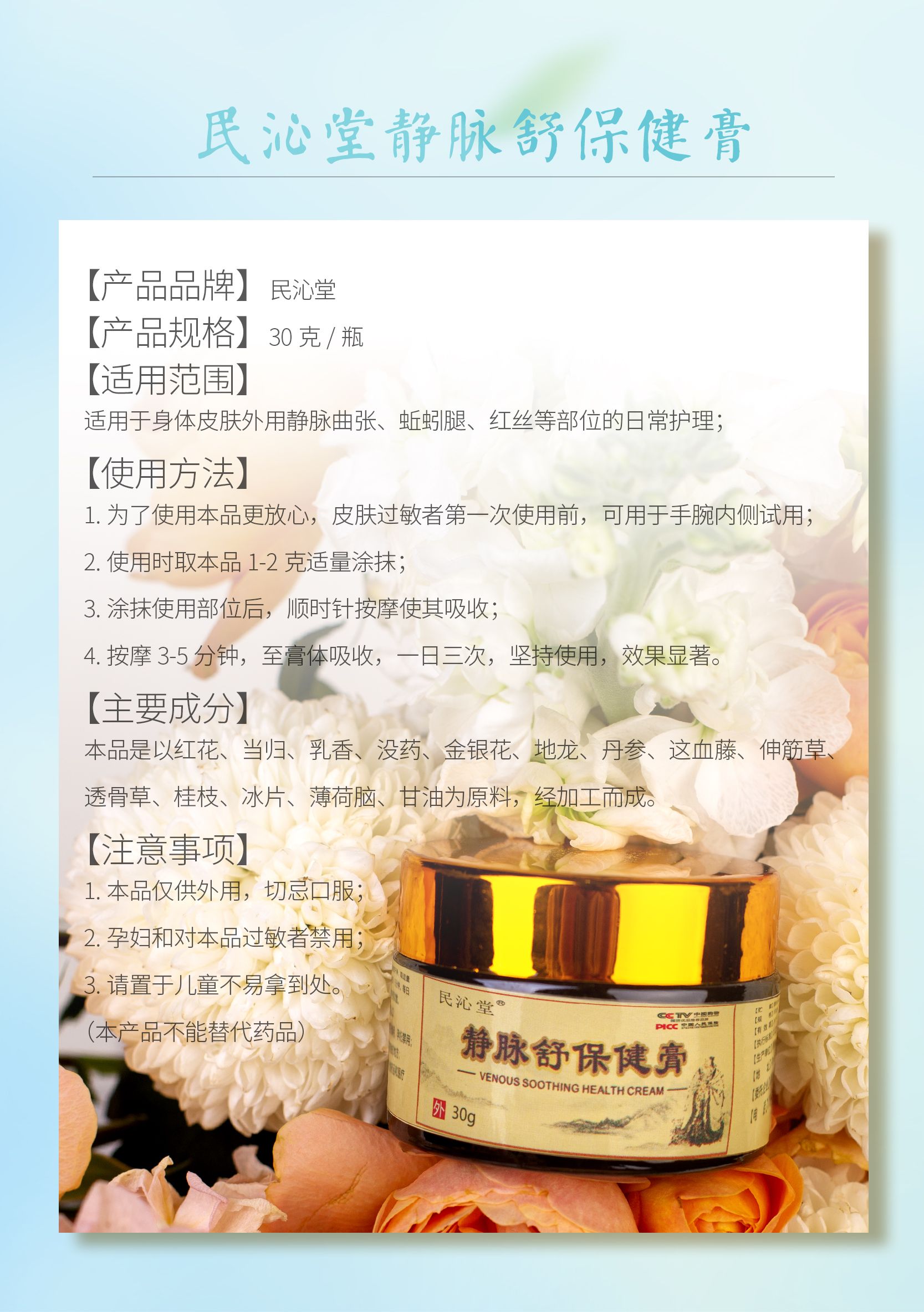 商品名称:民沁堂 静脉舒保健膏