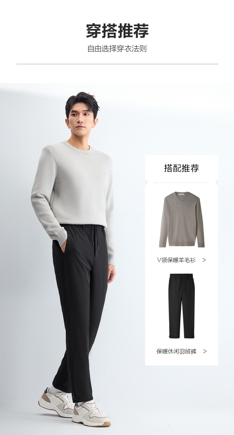 商品名称:【保暖鸭绒】冬季轻商务时尚抽绳松紧腰耐磨防风男士羽绒裤 552520