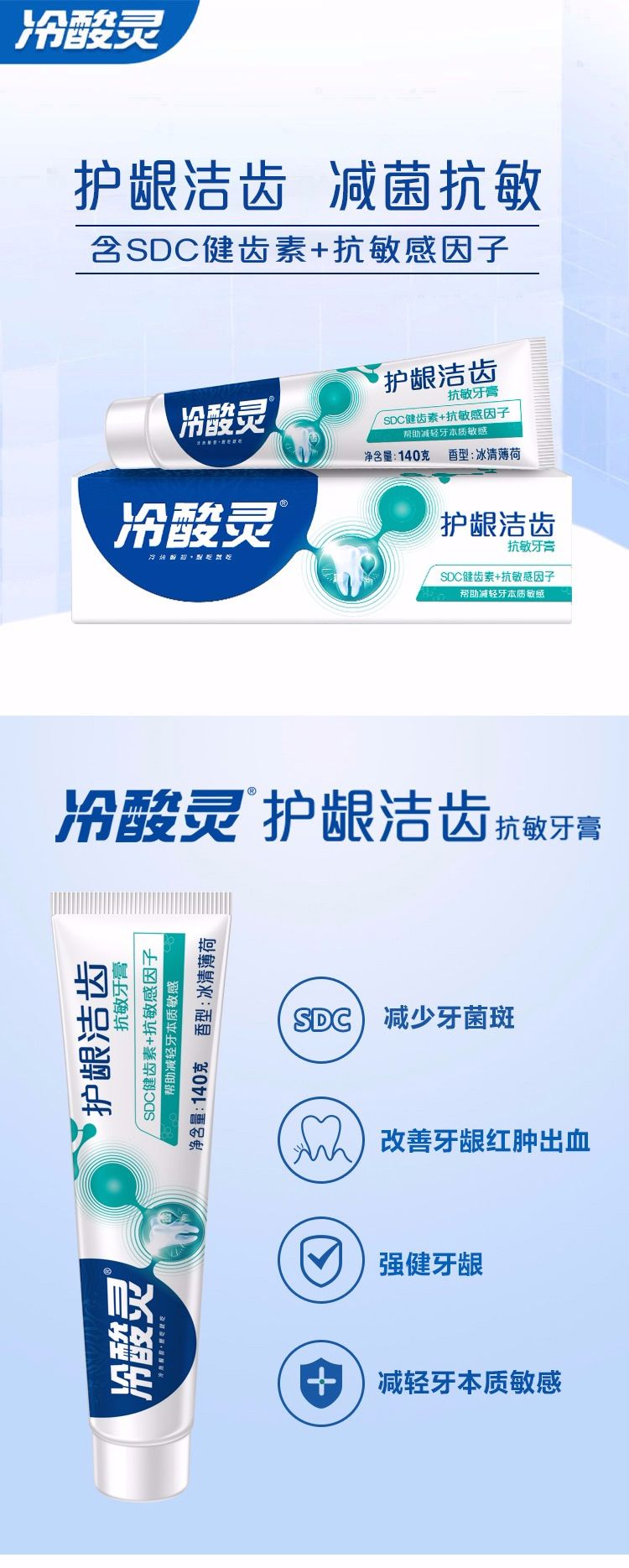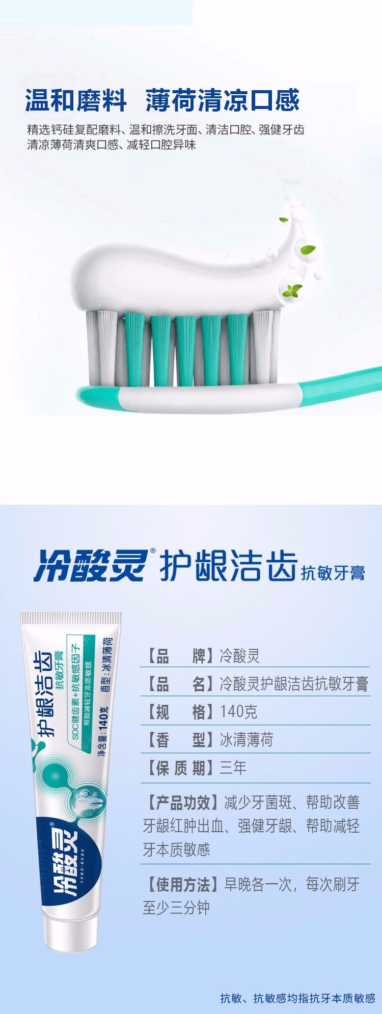 商品名称:冷酸灵 护龈洁齿抗敏牙膏140g+健齿先锋牙刷双支装