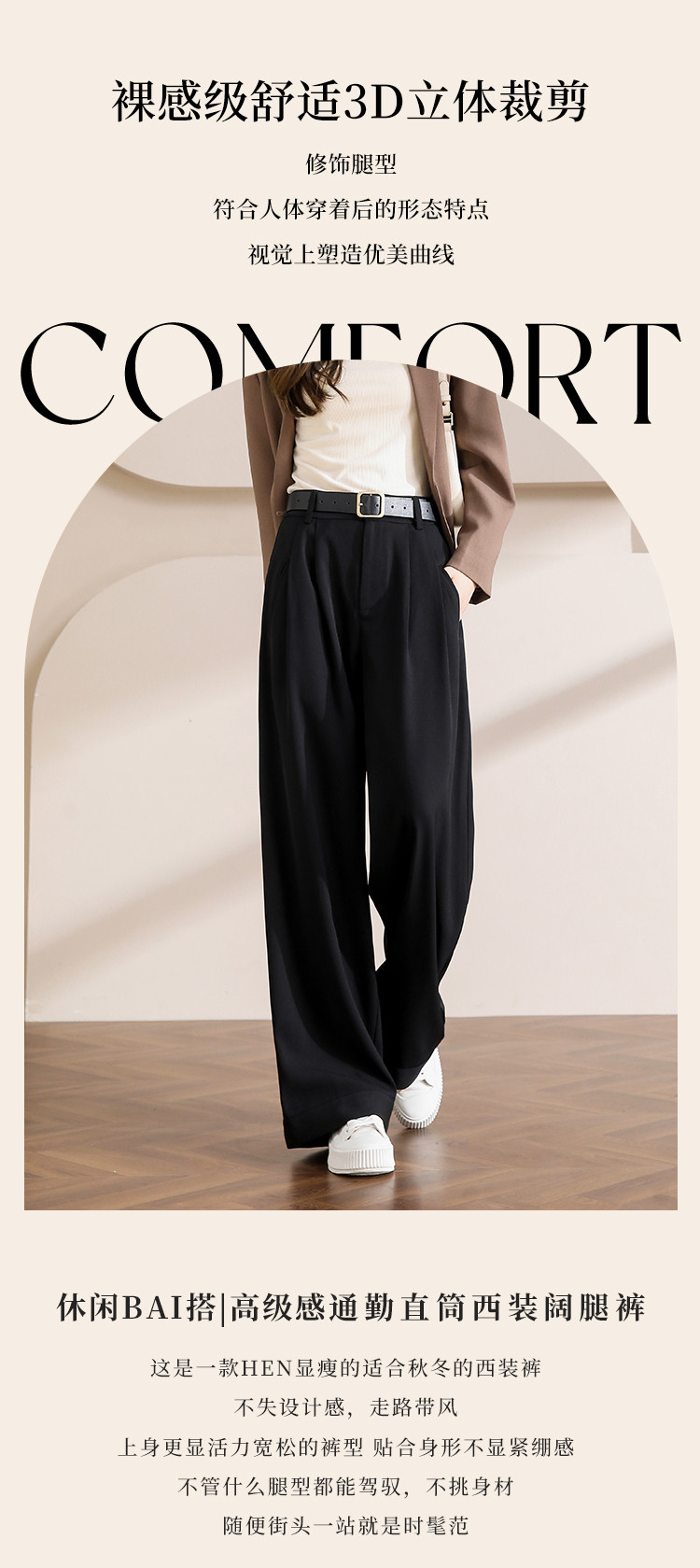 商品名称:【设计感斜插袋】实用百搭通勤&日常休闲纯色遮胯显瘦西装长裤女 813185