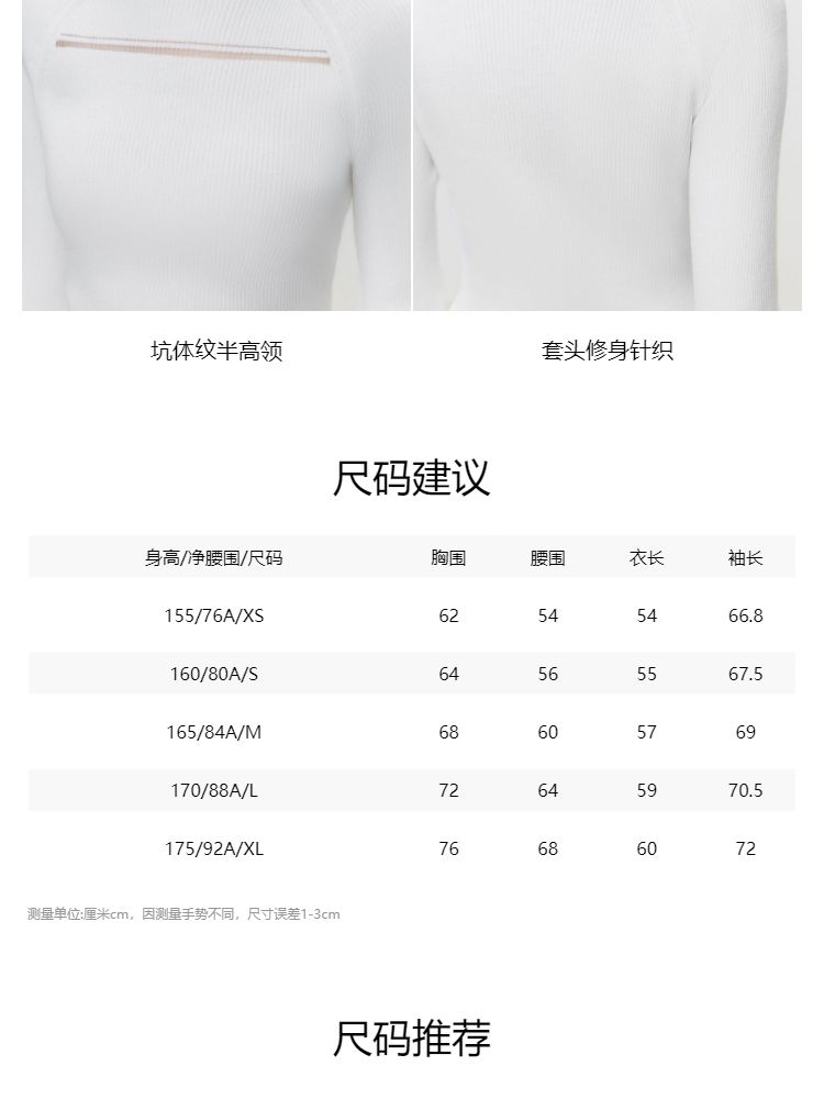 商品名称:【半高领纯色】春季舒适显瘦修身毛衣针织衫女 439578