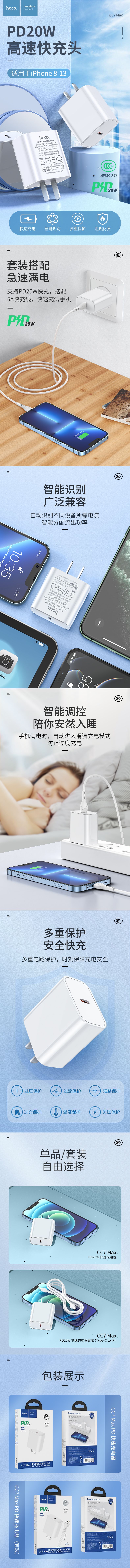 商品名称:hoco. PD20W快速充电器CC7 Max白色