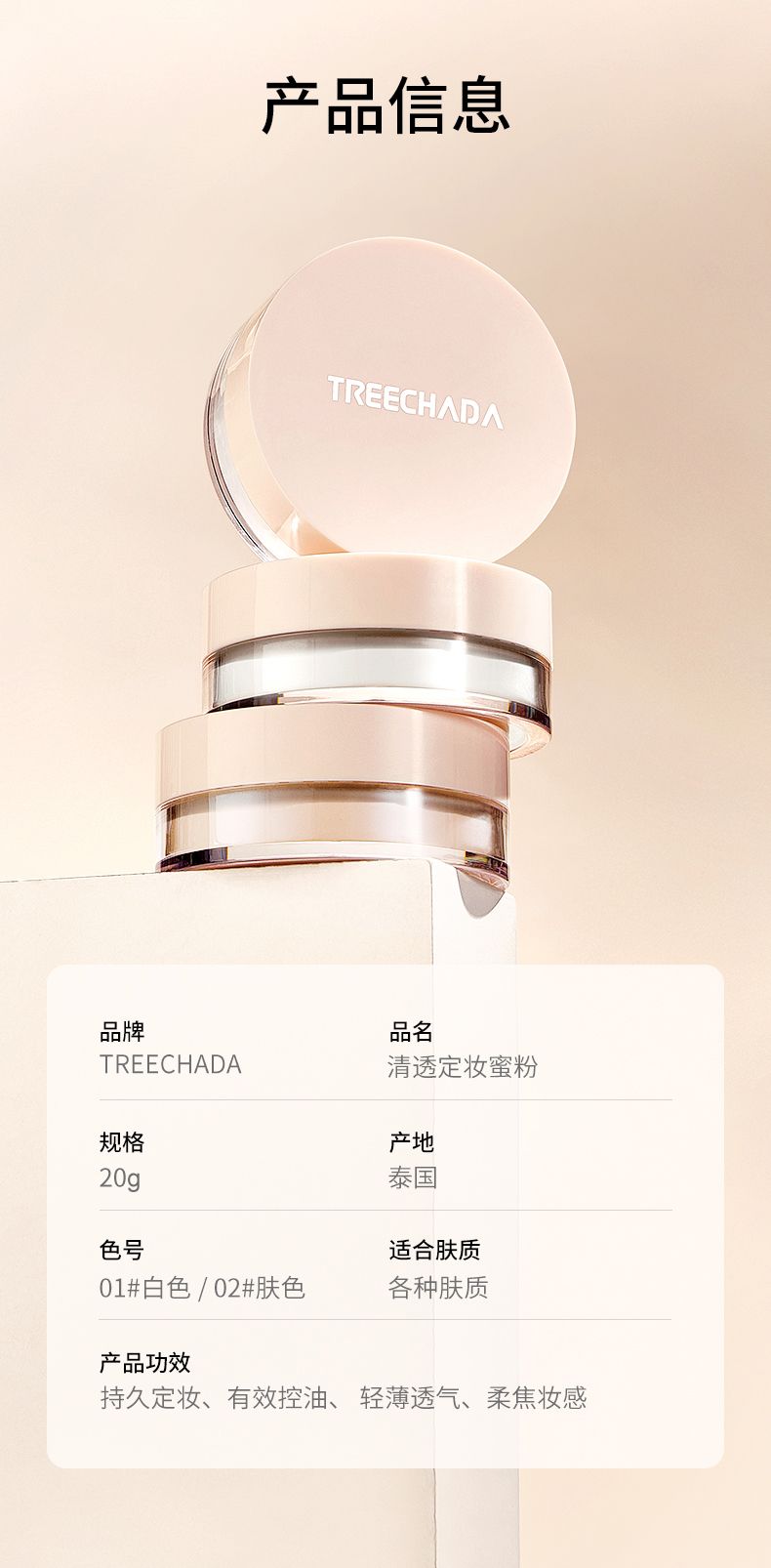 商品名称:treechada/璀璨妲 清透定妆蜜粉 20g