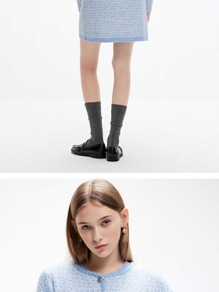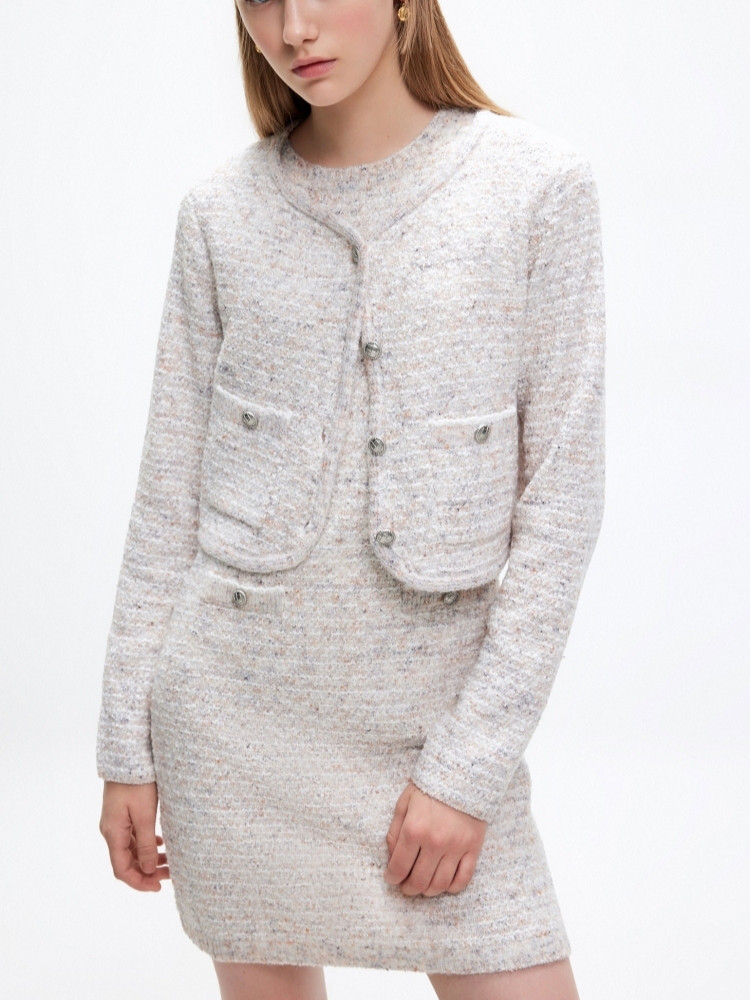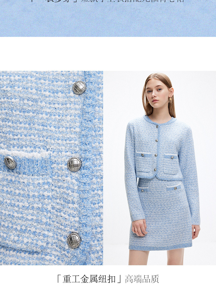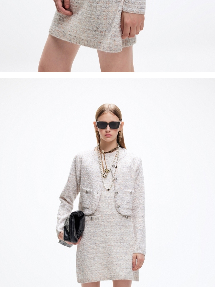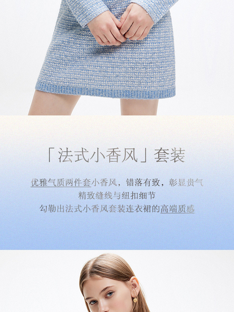 商品名称:【撞色小香风】2025春季优雅小香风短裙针织套装连衣裙女 064538