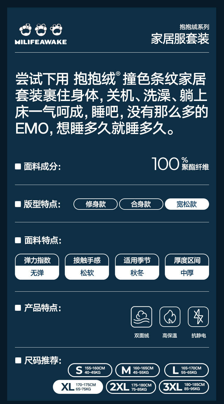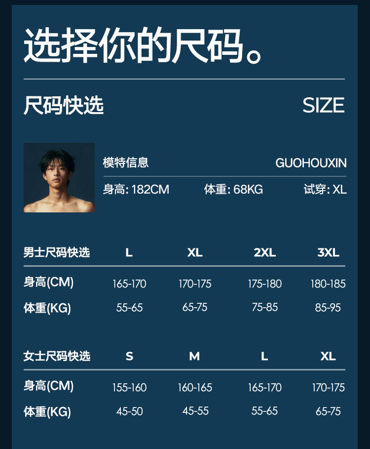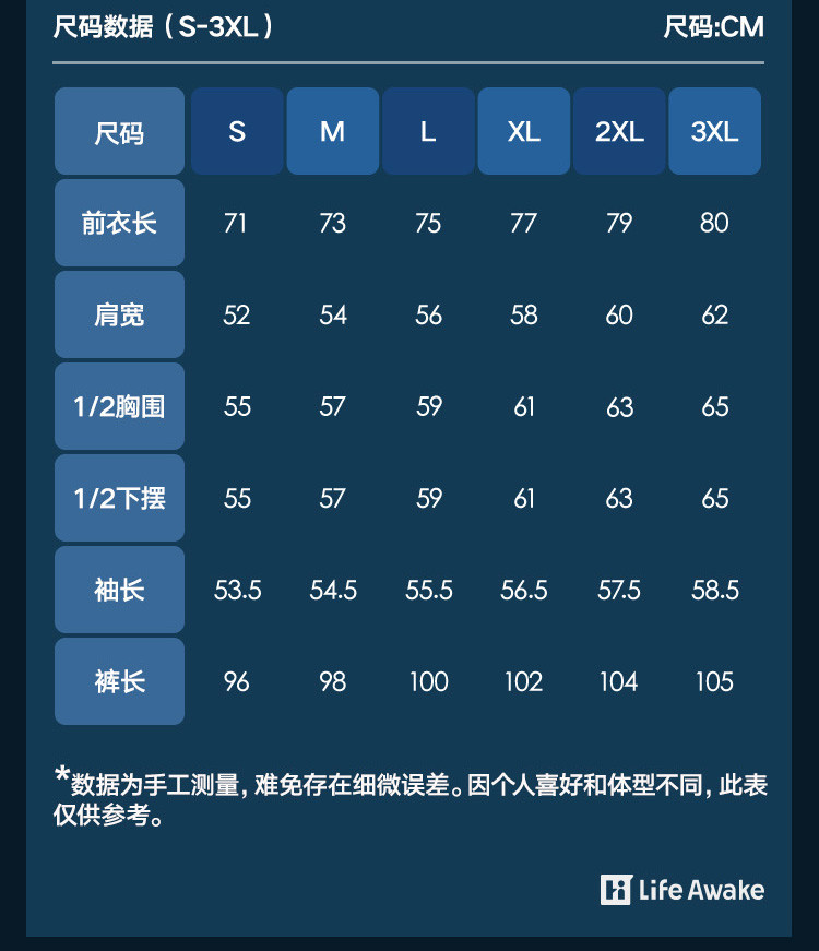 | 尺码 | 肩宽(cm) | 袖长(cm) | 衣长(cm) | 身高(cm) | 腰围(cm) | 裤长(cm) | 体重(kg) | 臀围(cm) | 胸围(cm) | 号型 |