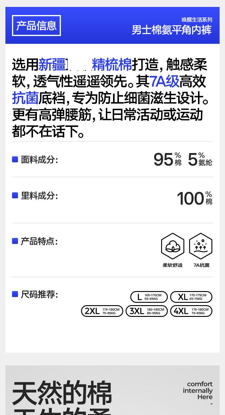 商品名称:【7A抑菌 纯棉档】3件装男士平角内裤高端透气轻奢四角短裤男 551514