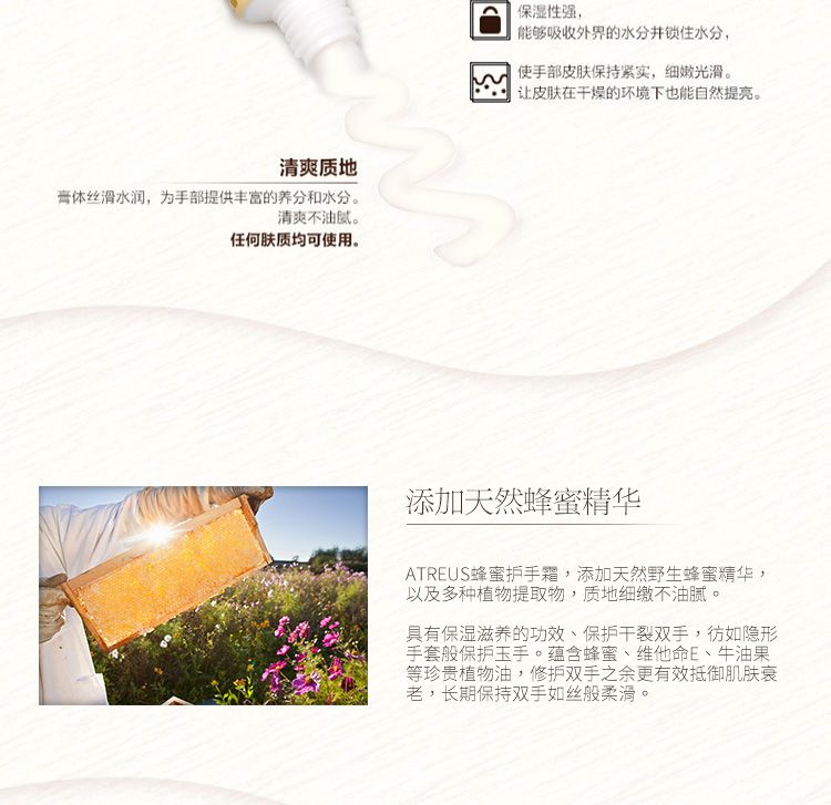 商品名称:ATREUS/爱醇诗 蜂蜜护手霜 35ml/支
