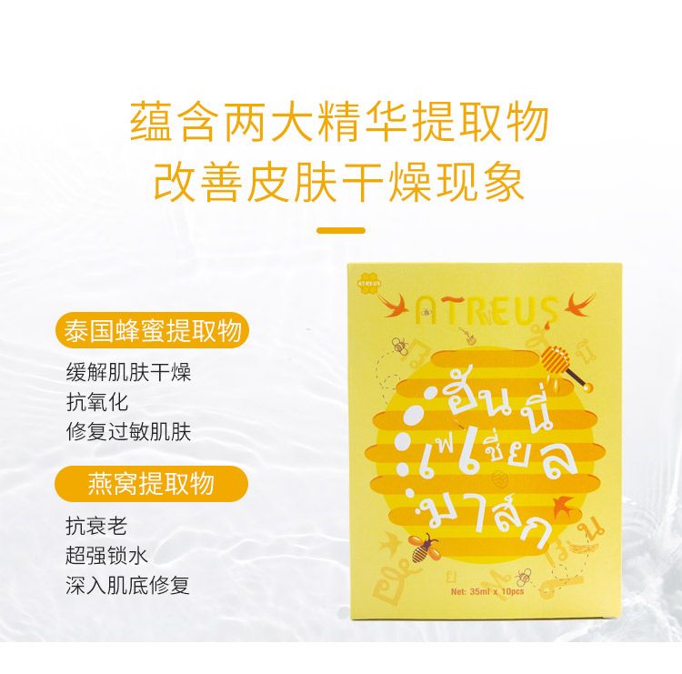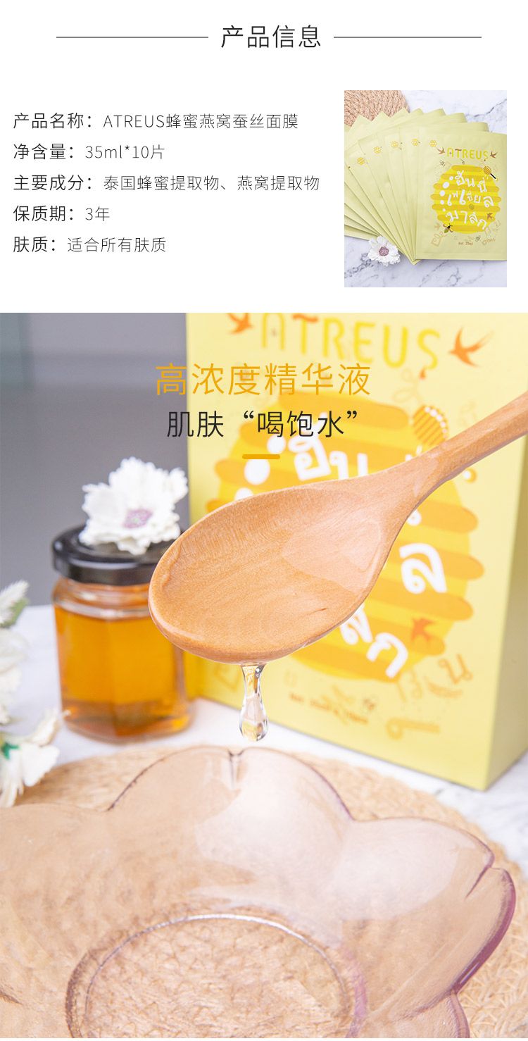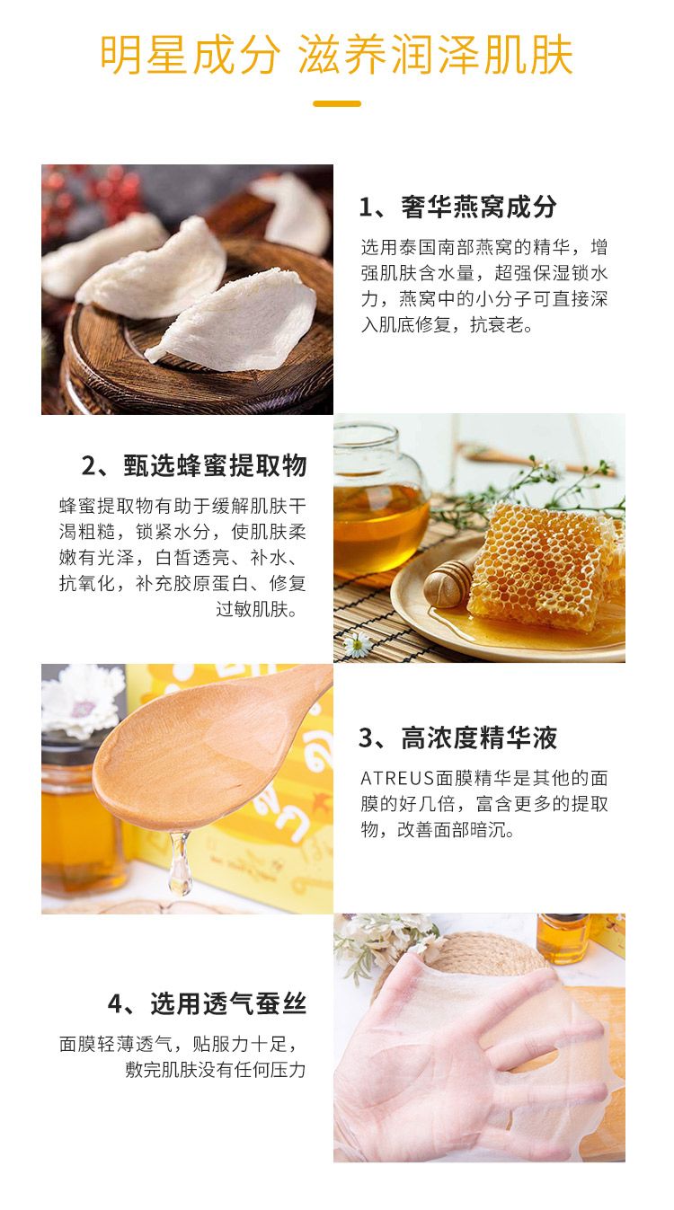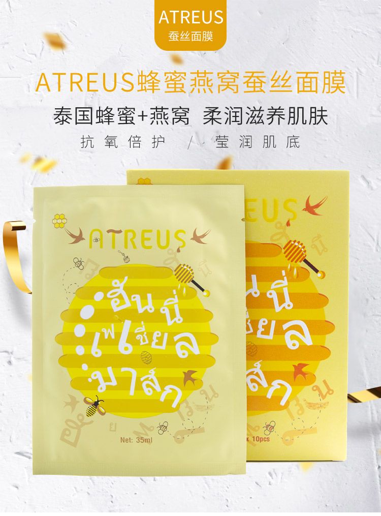 商品名称:ATREUS/爱醇诗 蜂蜜燕窝蚕丝面膜 35ml*10片/盒