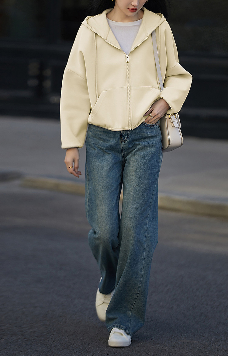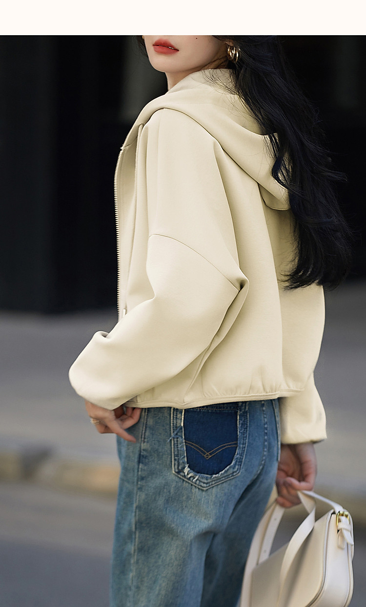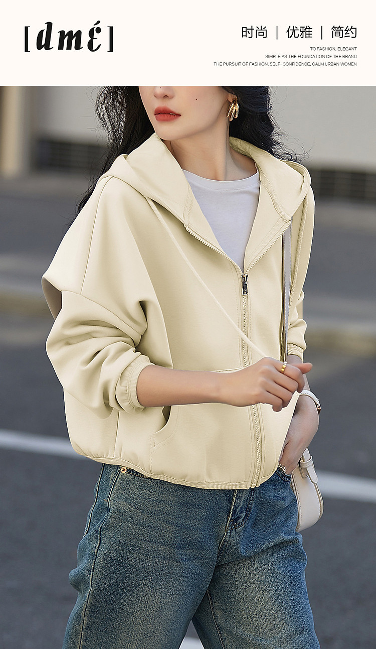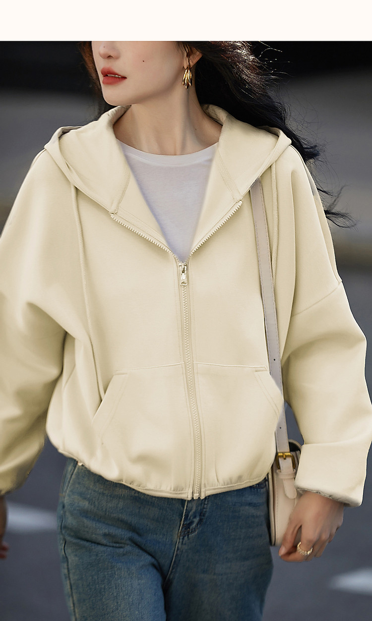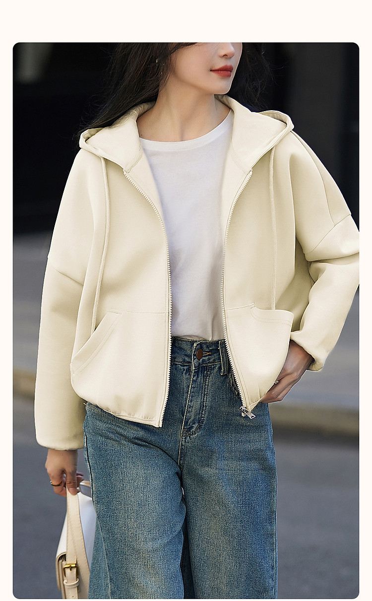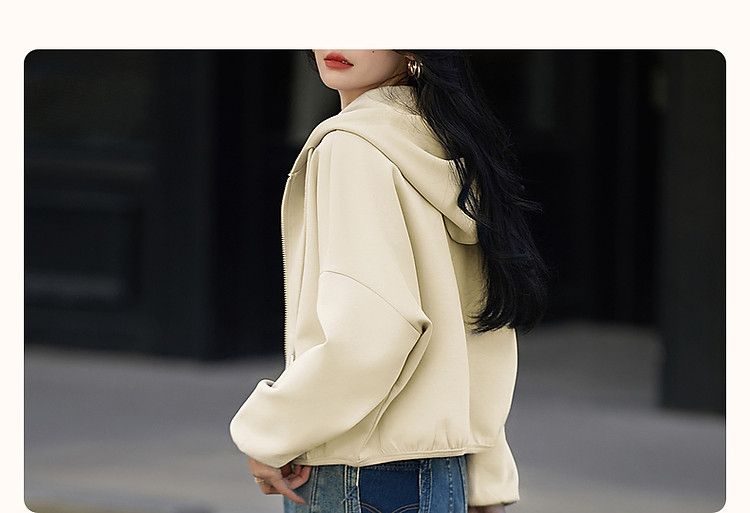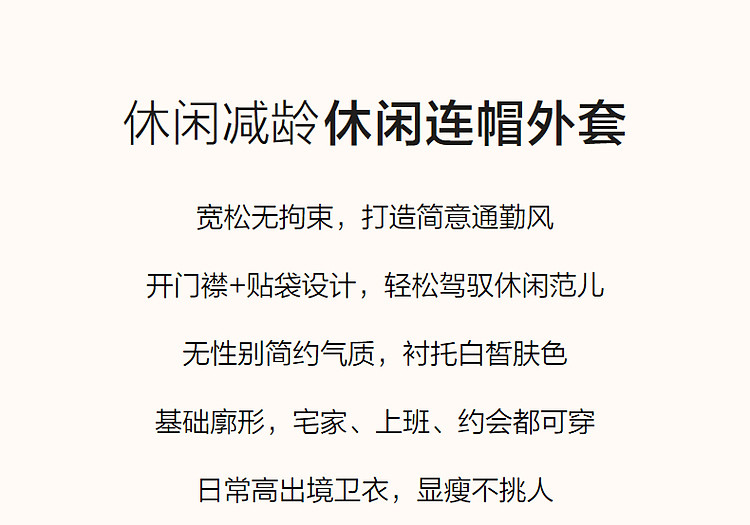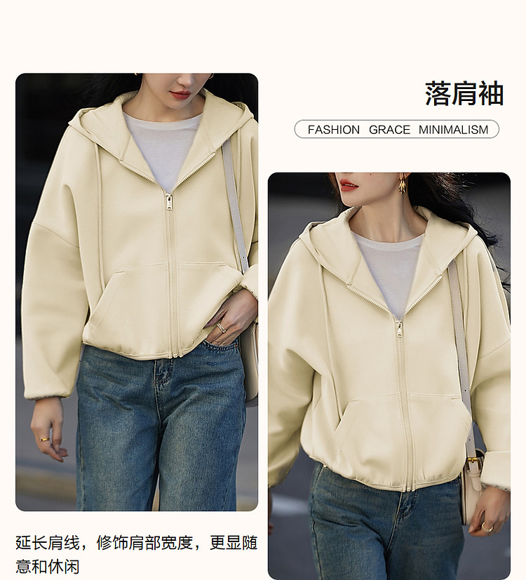 商品名称:【舒弹空气层】春秋轻龄活力连帽抽绳落肩大贴袋短款小个子女外套 011521