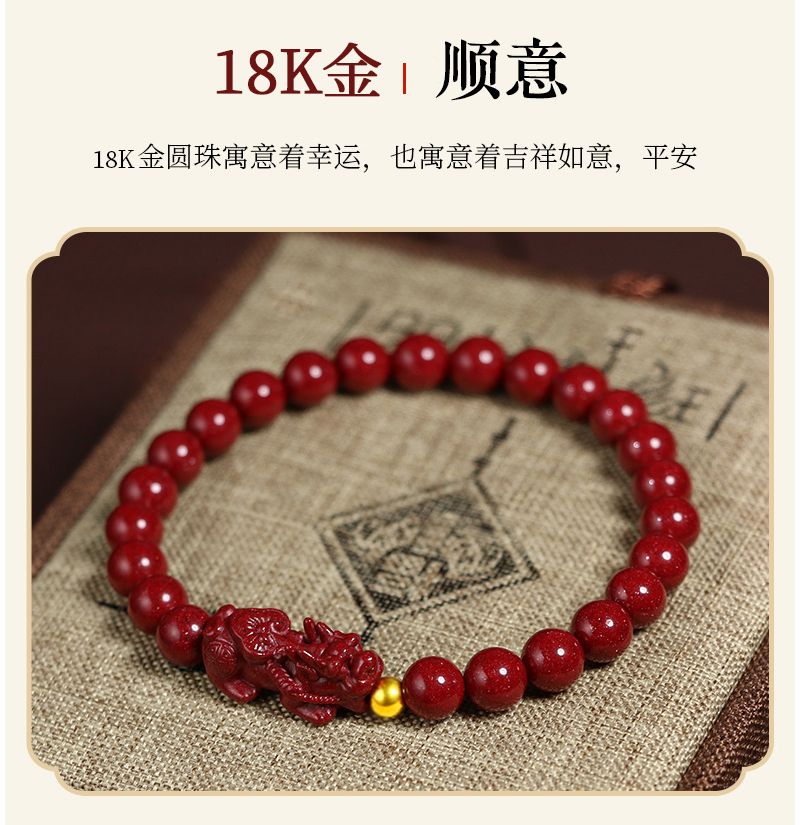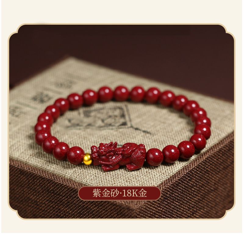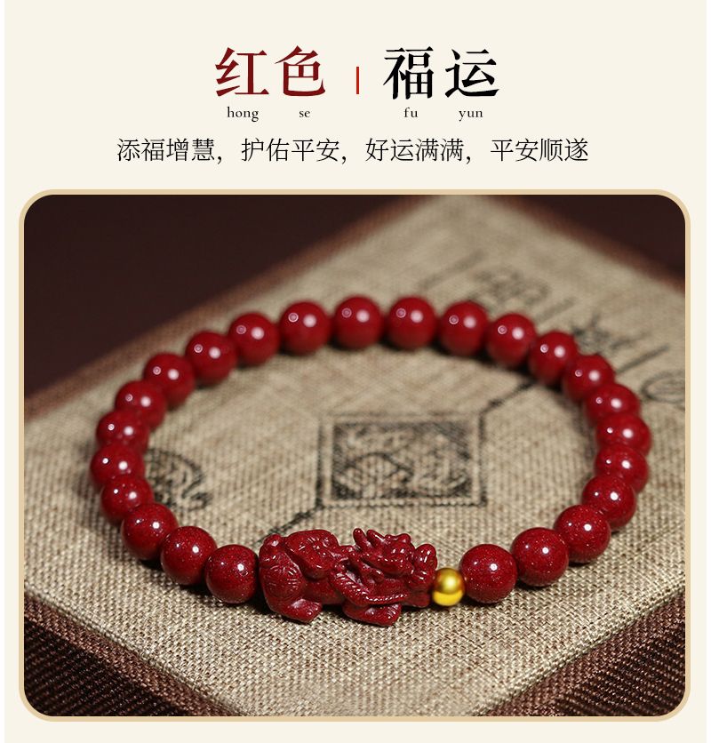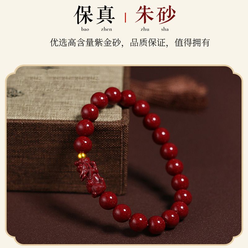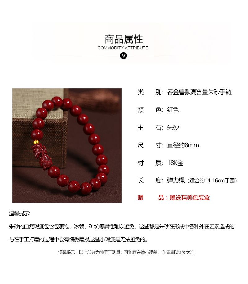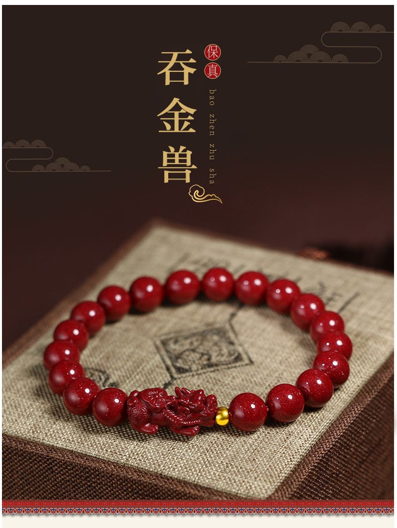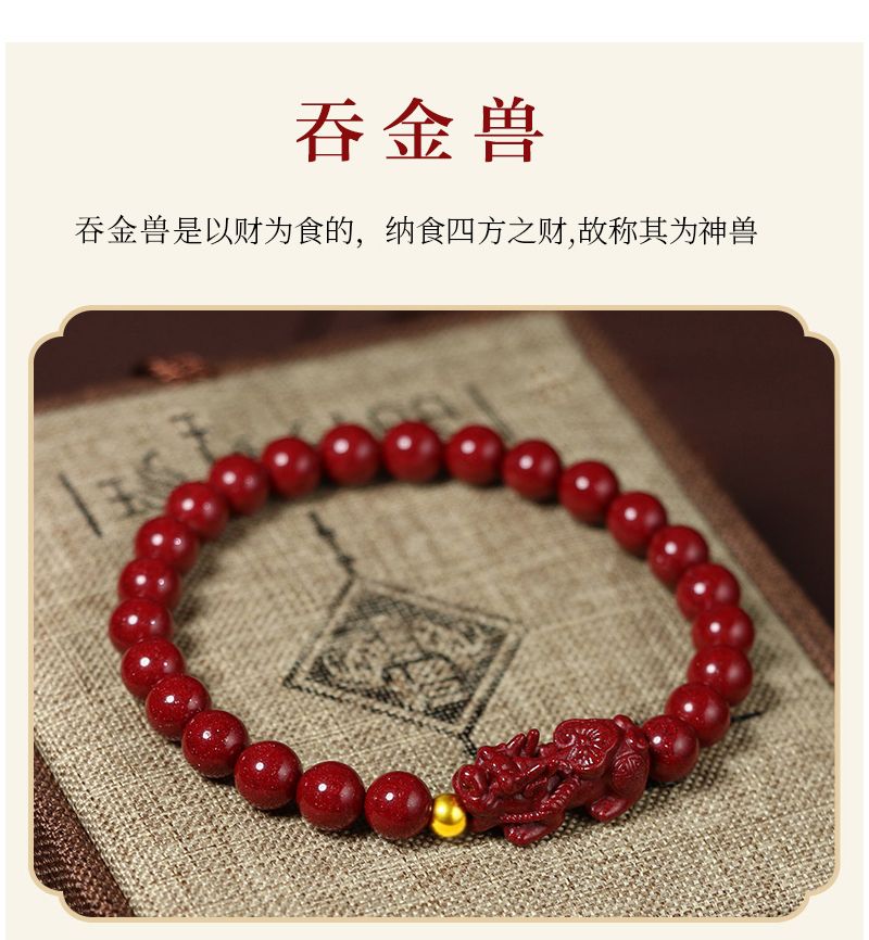 商品名称:吞金兽款高含量朱砂手链8mm大小【F038】