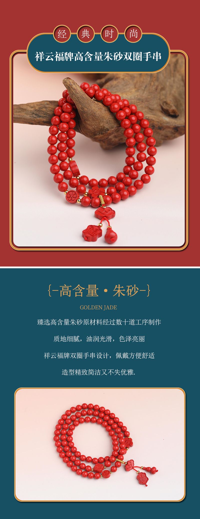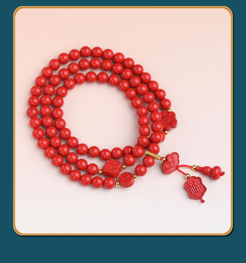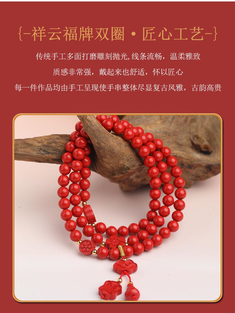祥云福牌高含量朱砂双圈手串