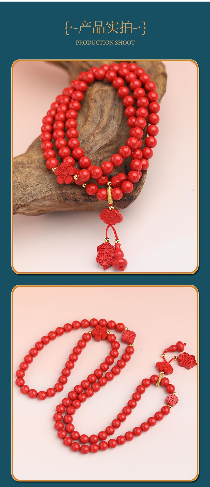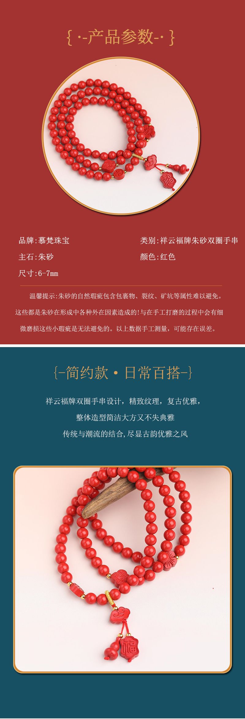 商品名称:祥云福牌高含量朱砂双圈手串