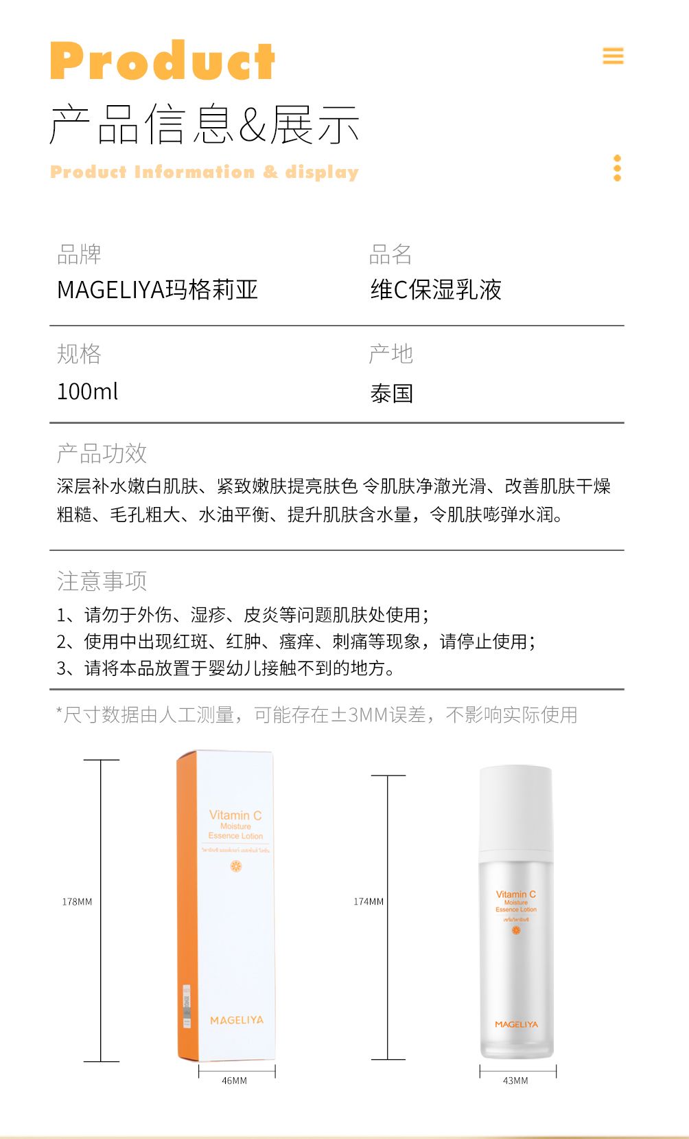 商品名称:MAGELIYA/玛格莉亚 维C保湿乳液 100ml/瓶