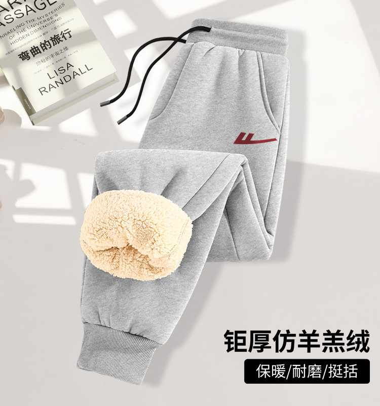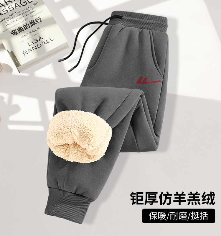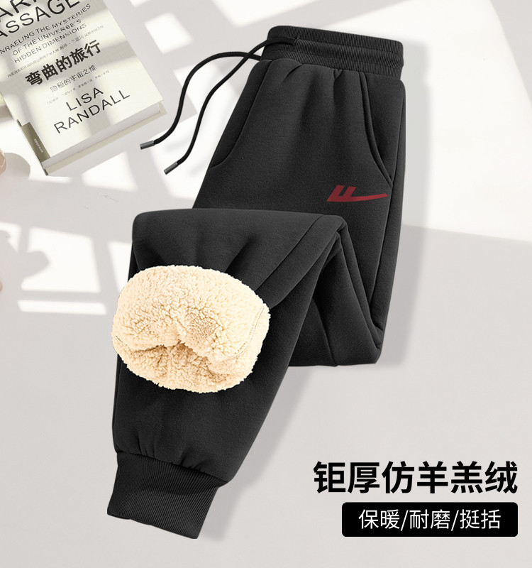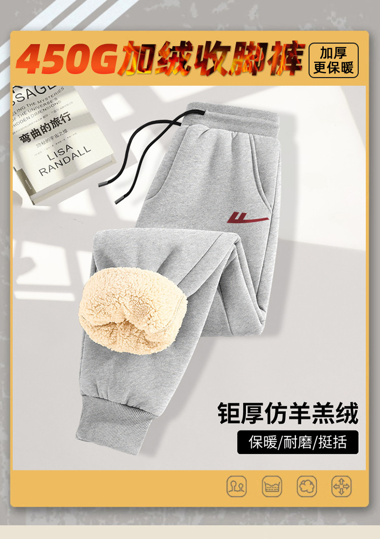 【450克重磅棉款】加绒运动裤男加厚仿羊羔冬季保暖束脚卫裤男 457363