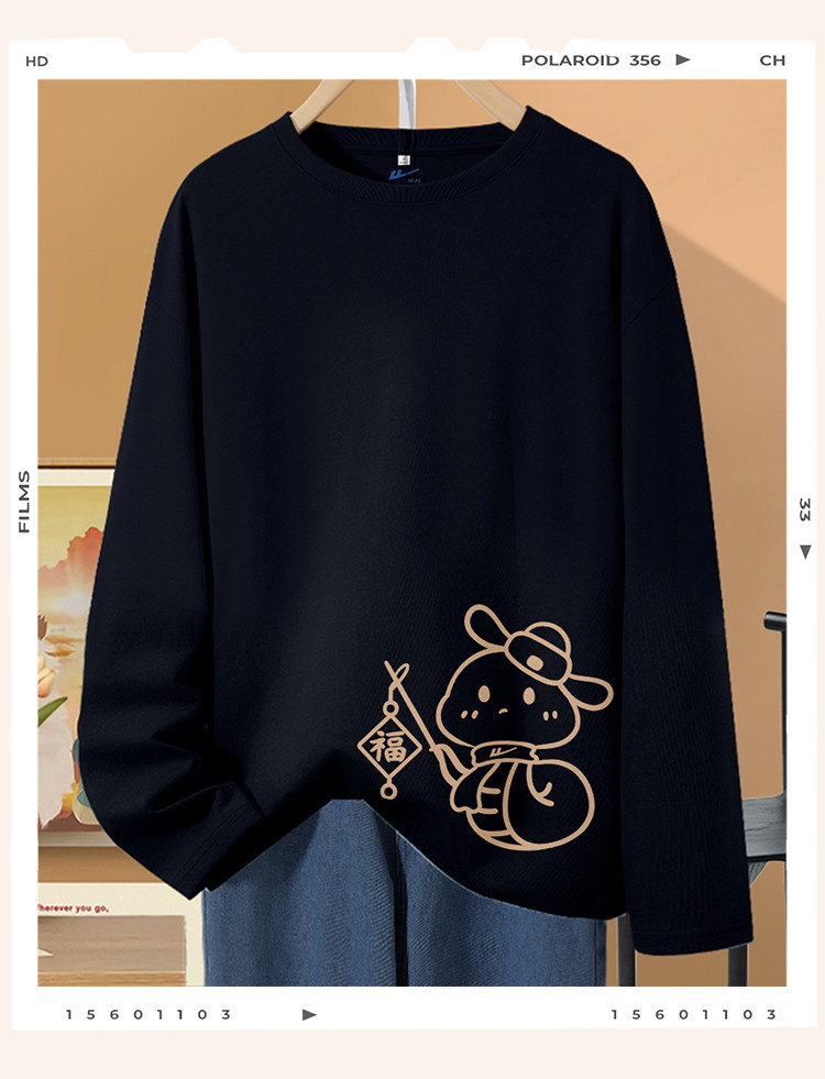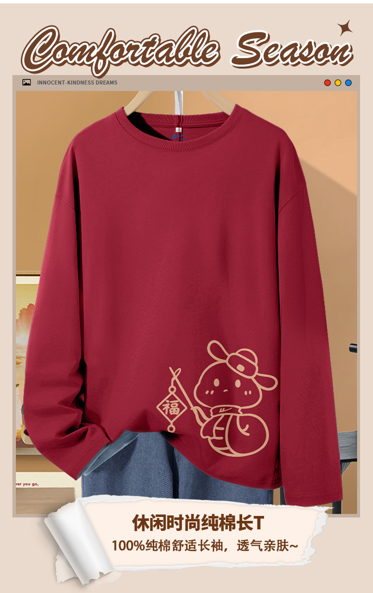 商品名称:【女装重磅棉】春秋蛇年贺岁纯棉长袖T恤女宽松显瘦休闲打底上衣 391763