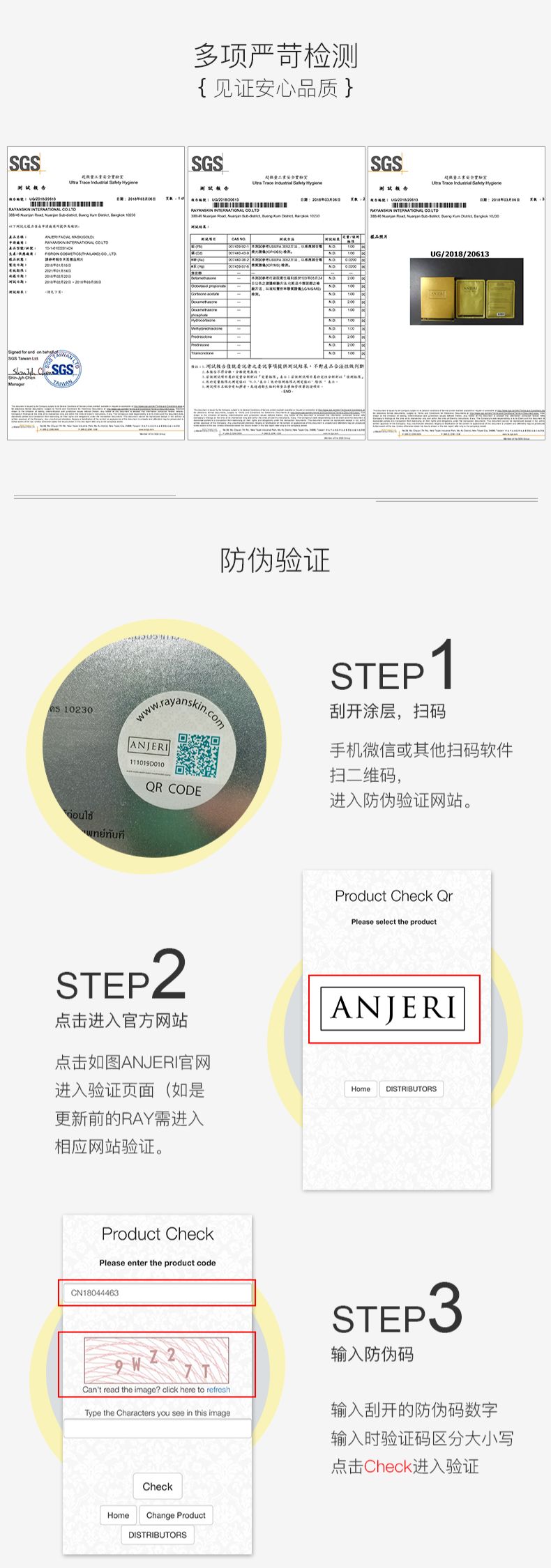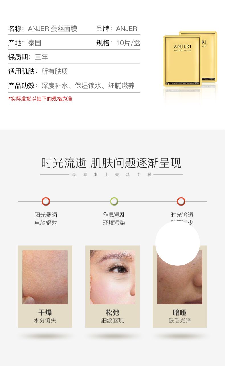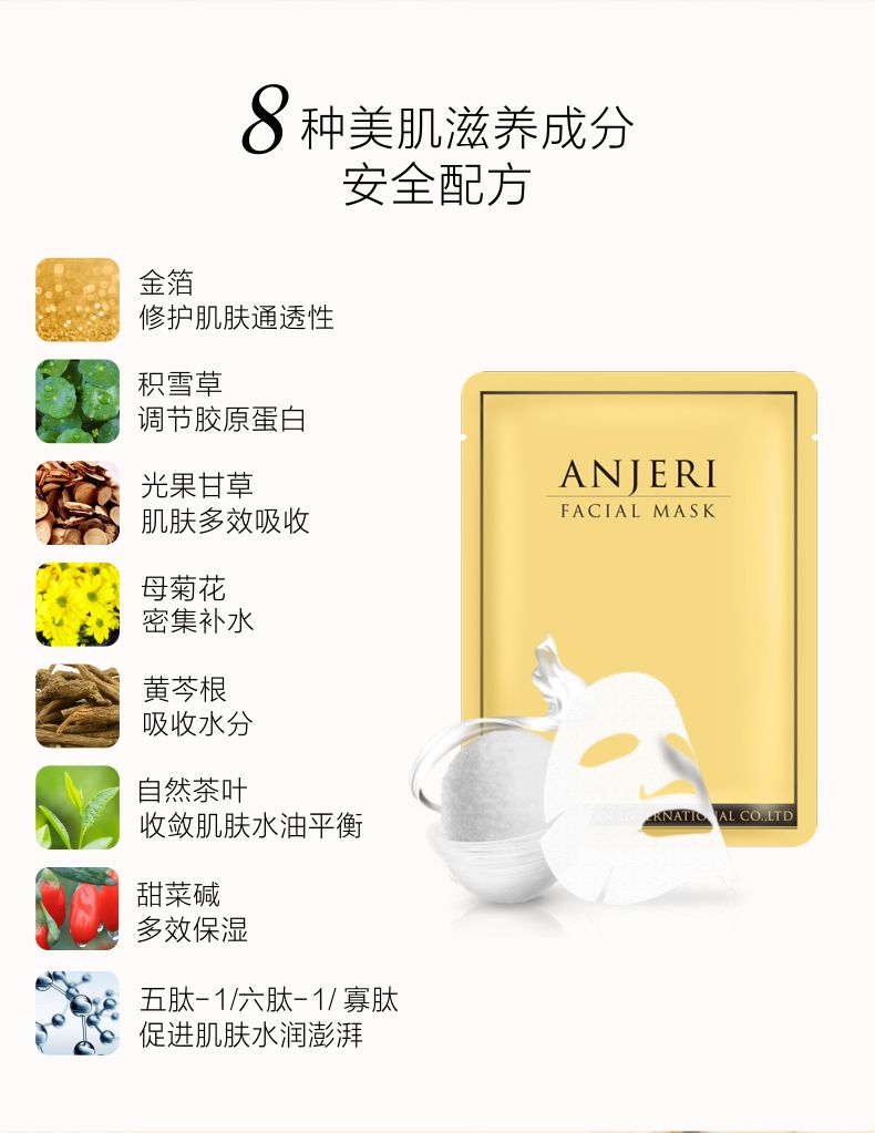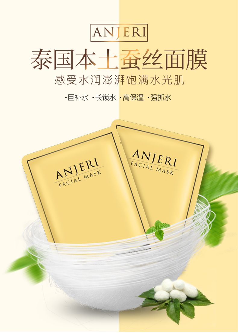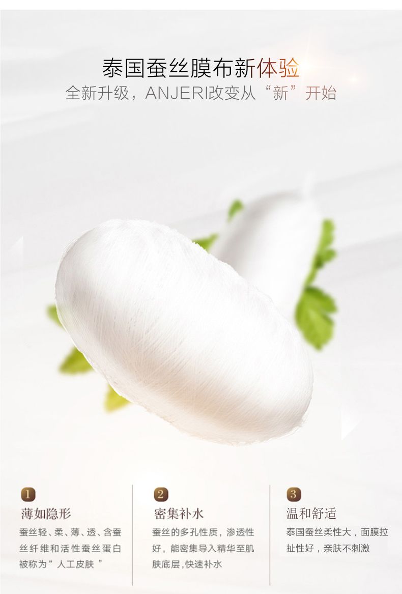 商品名称:ANJERI/滢润 蚕丝补水面膜 金色35g*10片/盒
