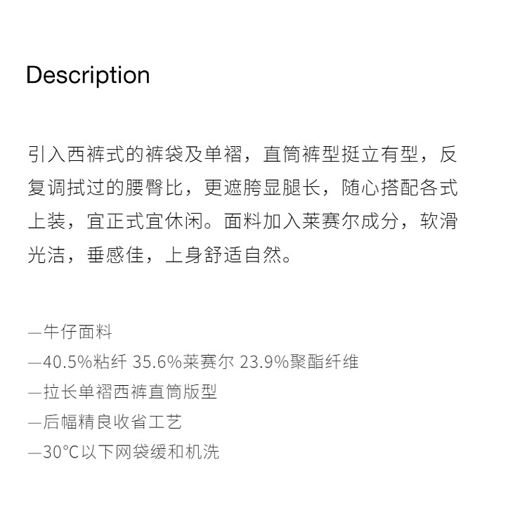 商品名称:春装垂感显瘦高级莱赛尔牛仔长裤直筒裤女 385359