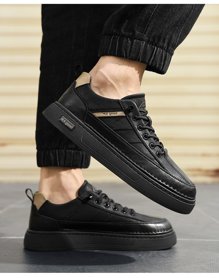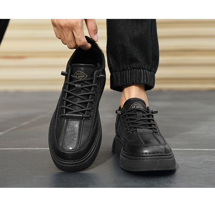 男鞋板鞋经典纯色厚底透气潮流增高休闲鞋免系带男士板鞋 490063