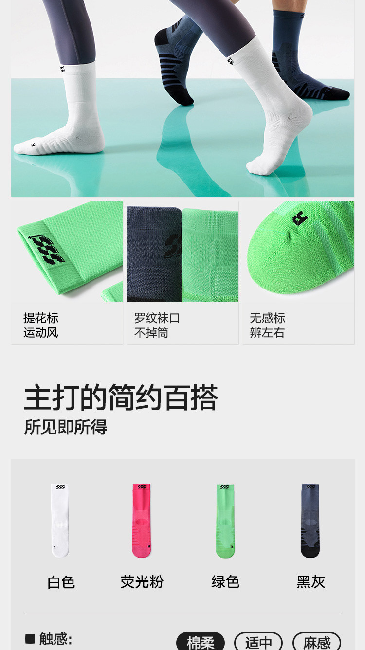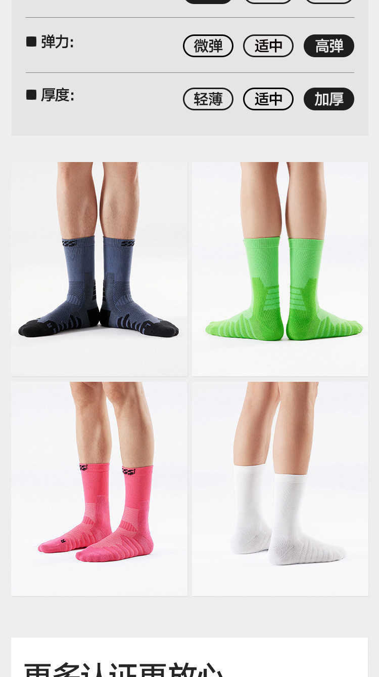 商品名称:【7A抗菌 防臭】男女同款专业跑步运动袜子中筒袜防滑底篮球袜 515546