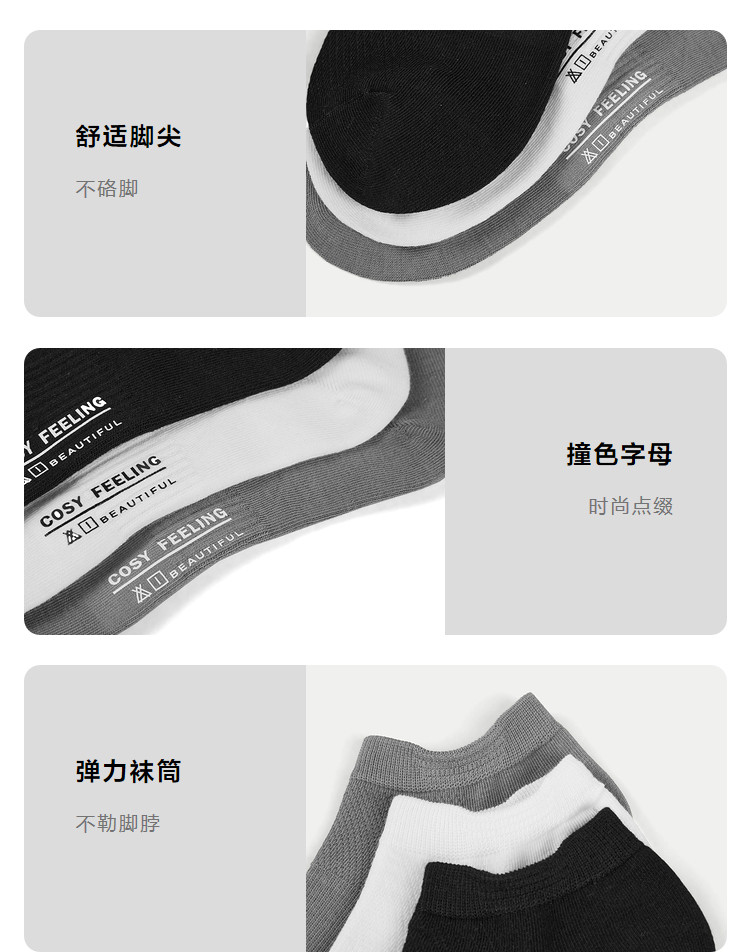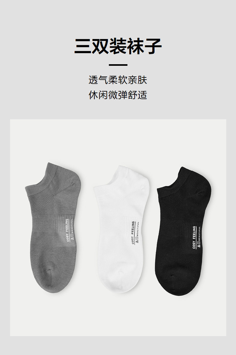 商品名称:【三双装】2025透气吸汗细腻时尚撞色微弹船袜男士袜子 564680