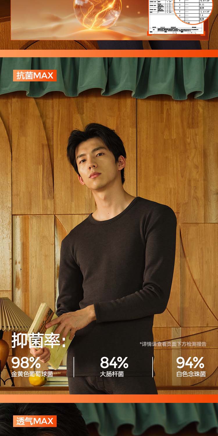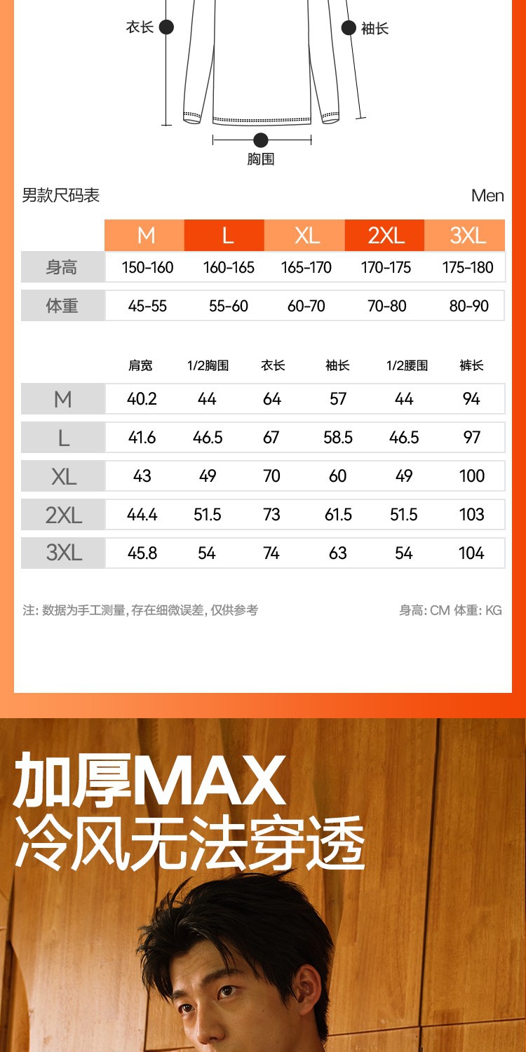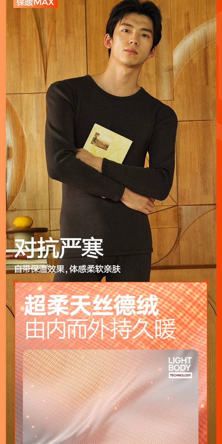 商品名称:【德绒发热 含羊绒蚕丝】男士秋衣单件秋冬加绒加厚打底保暖内衣 685658