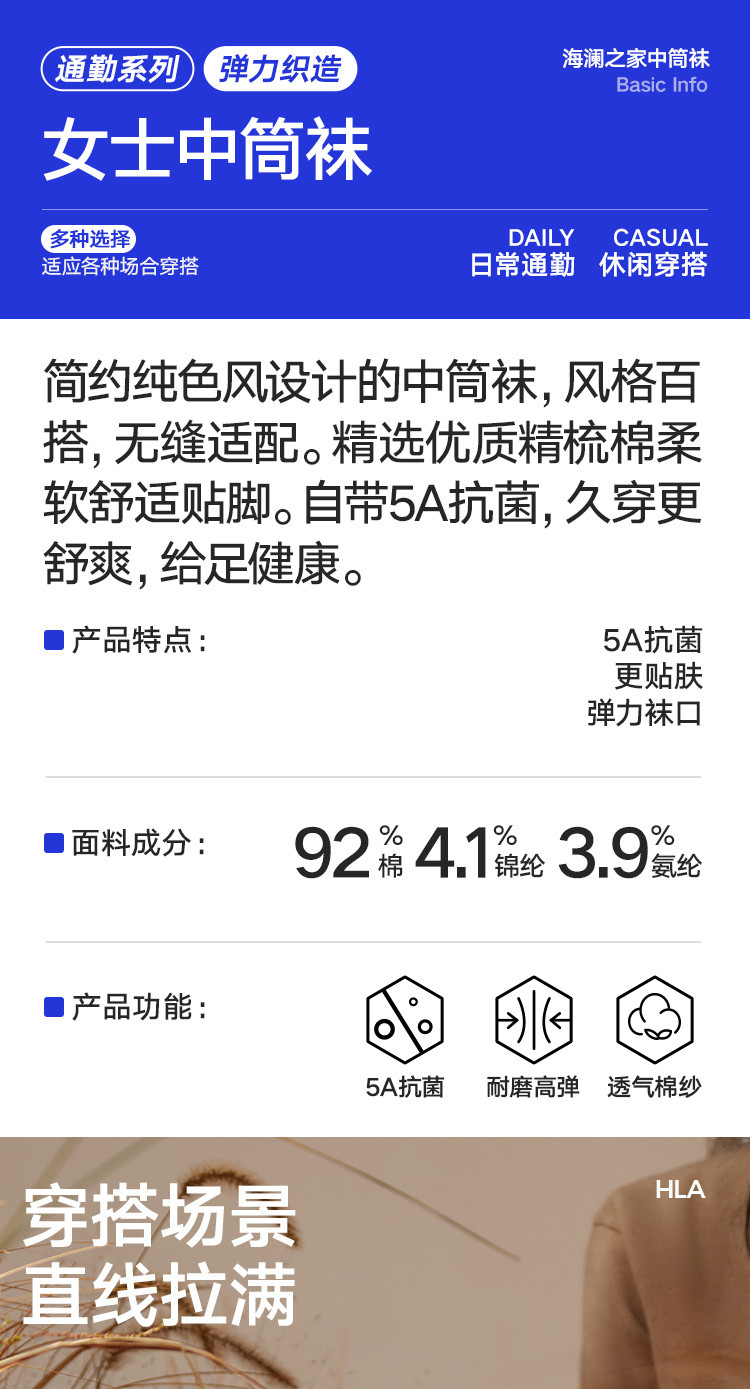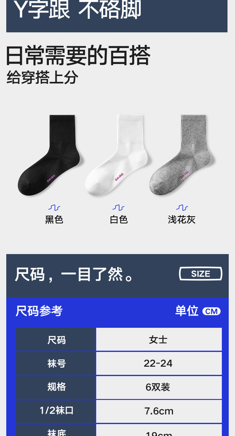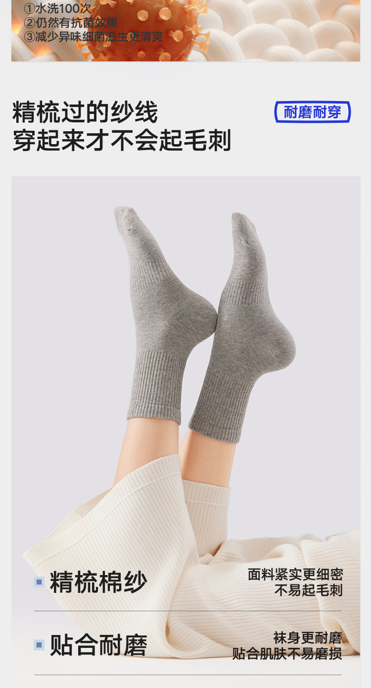 商品名称:【5A抗菌 棉柔透气】6双装女士中筒袜休闲百搭耐磨高弹无骨袜 367194