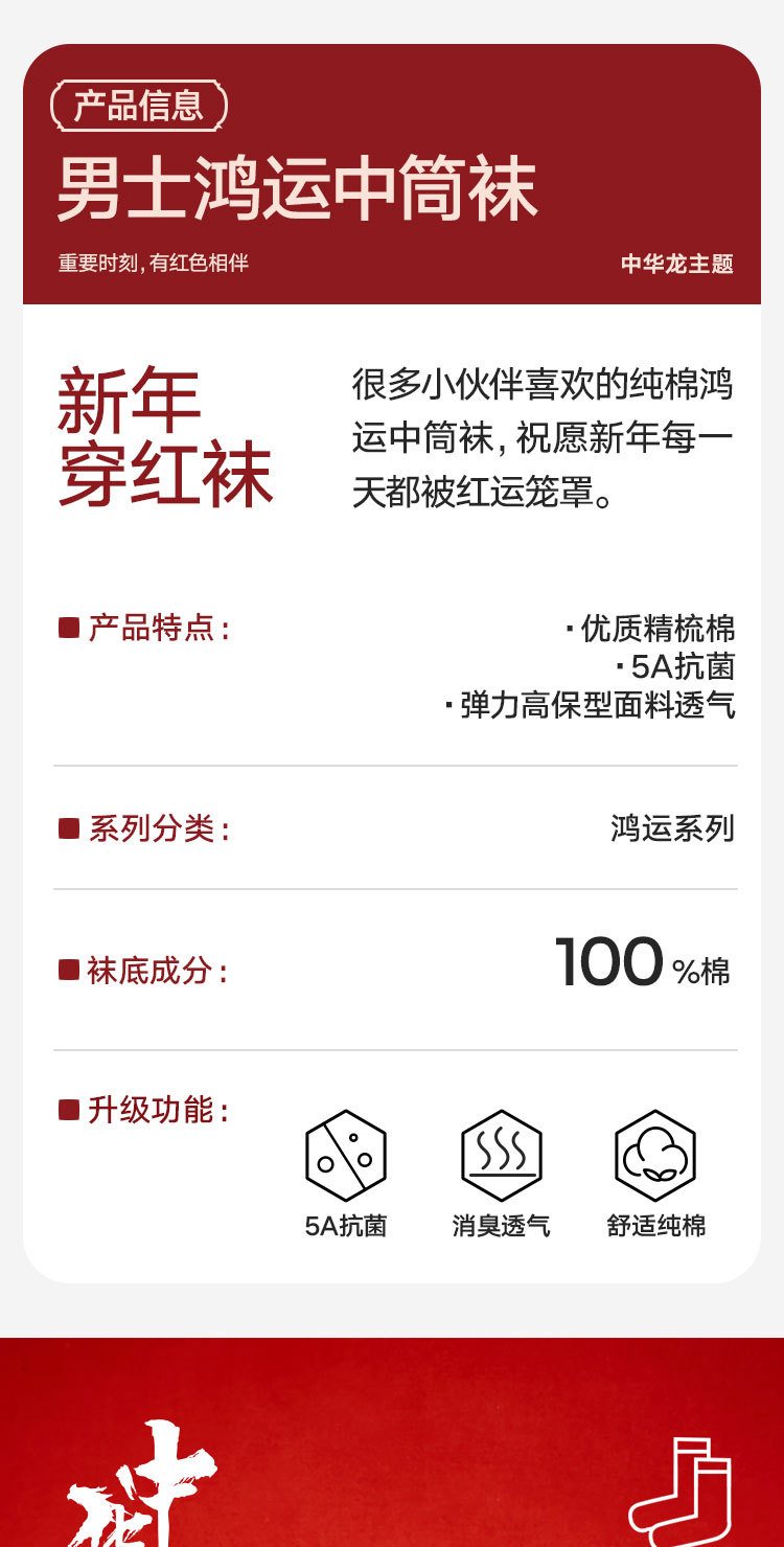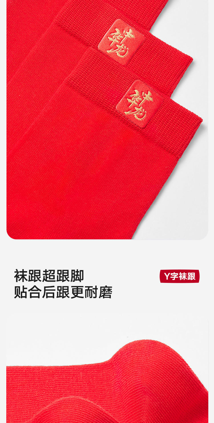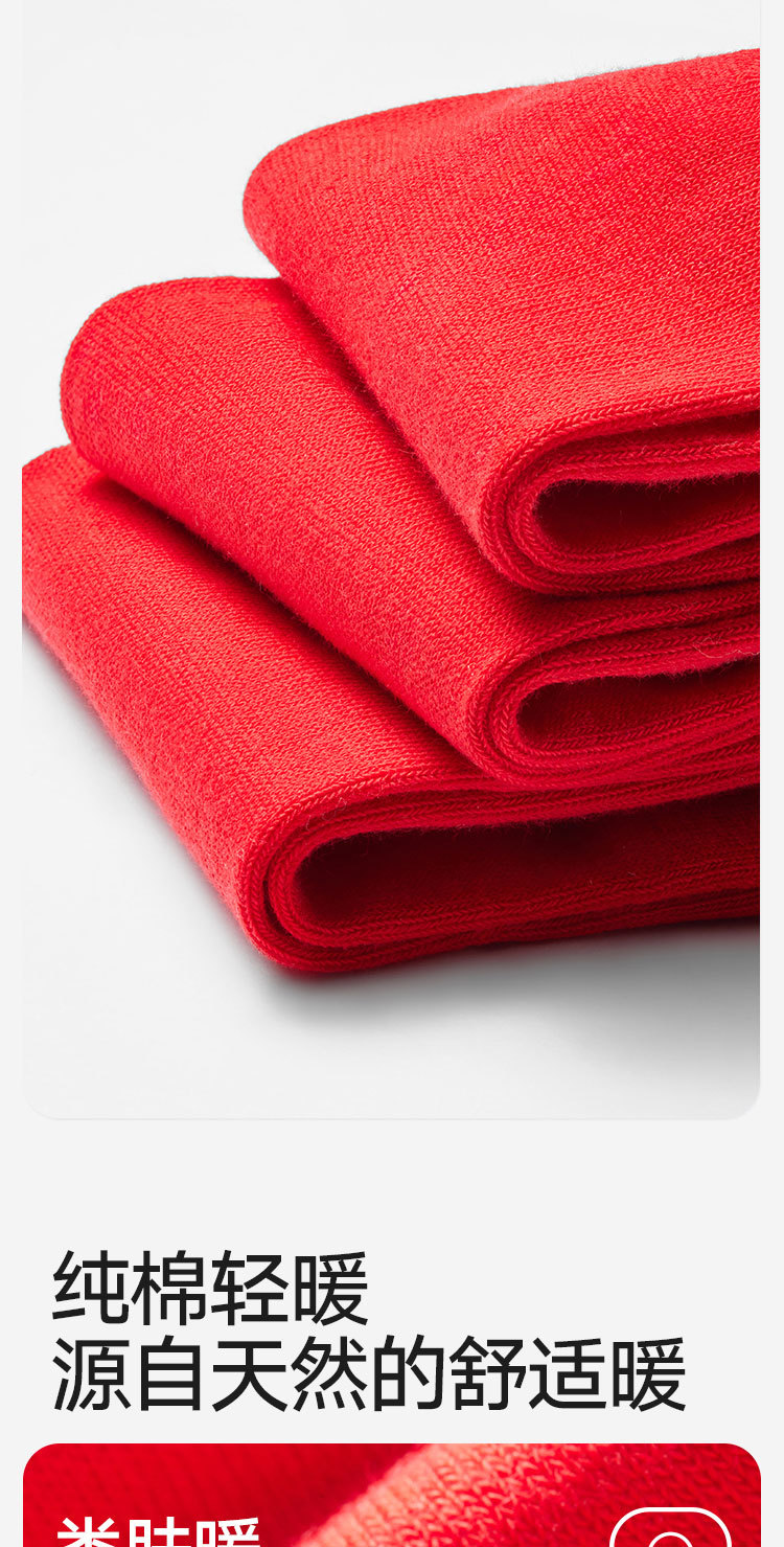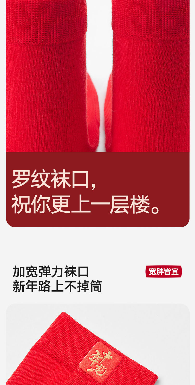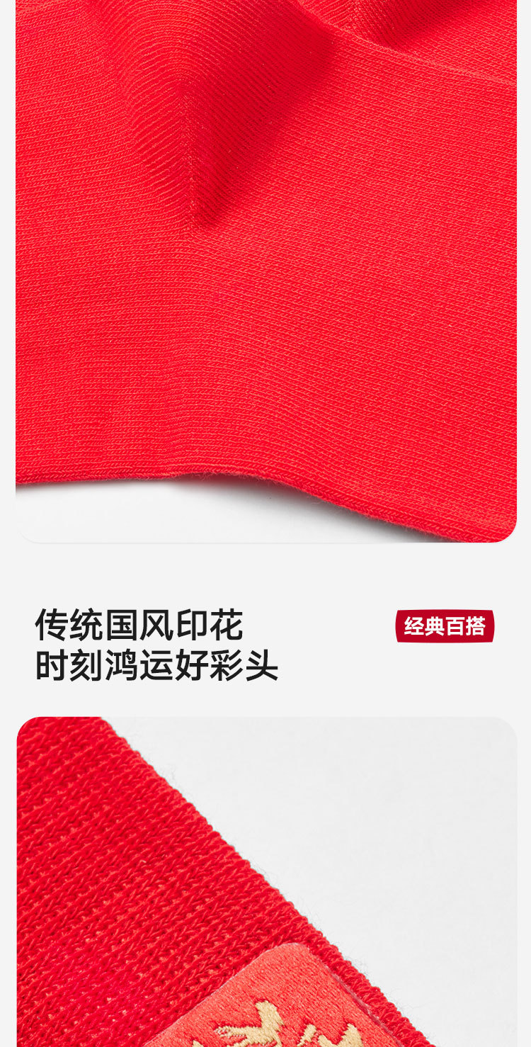 商品名称:【100%纯棉】3双装男士本命蛇年中筒袜红色抑菌消臭透气袜子 035674