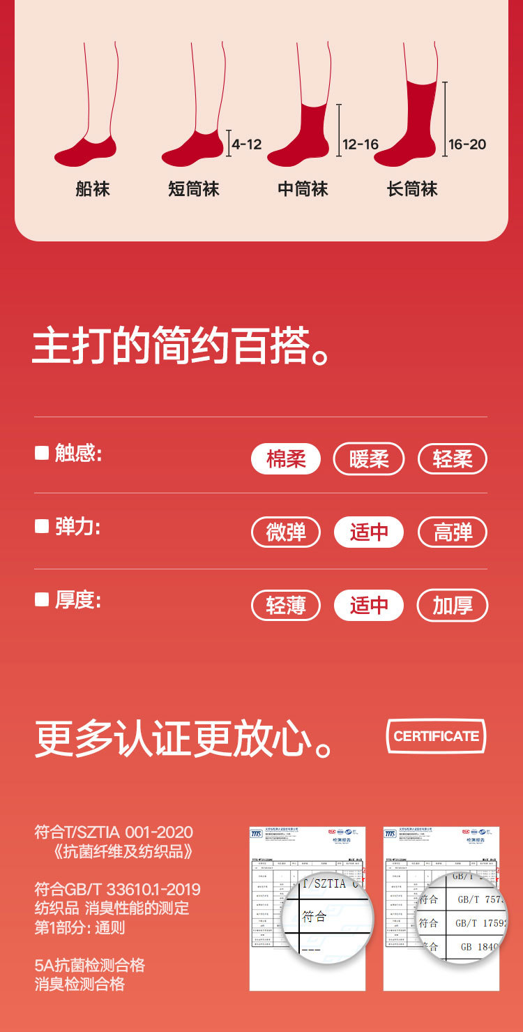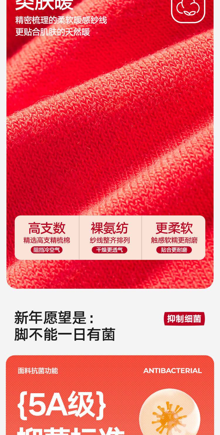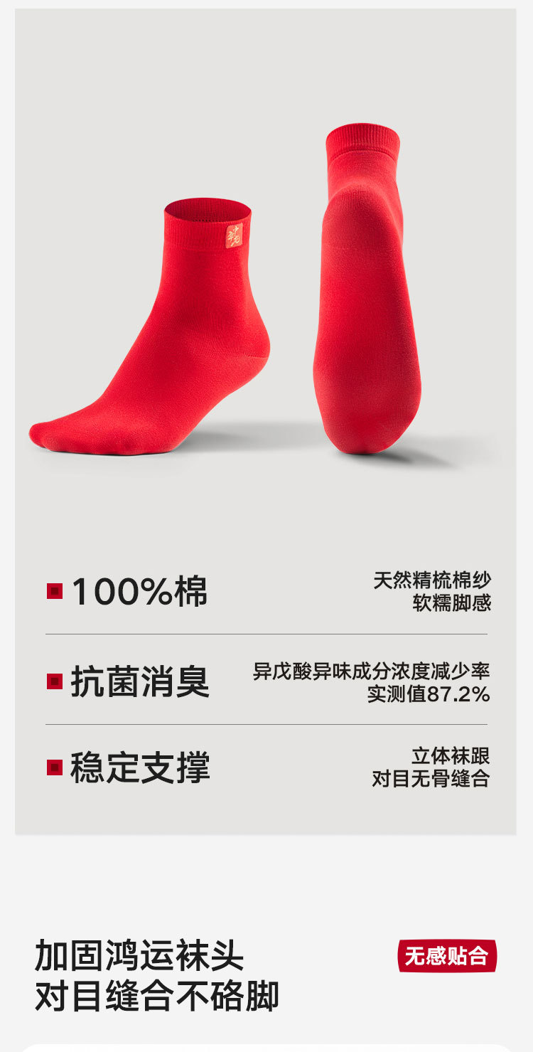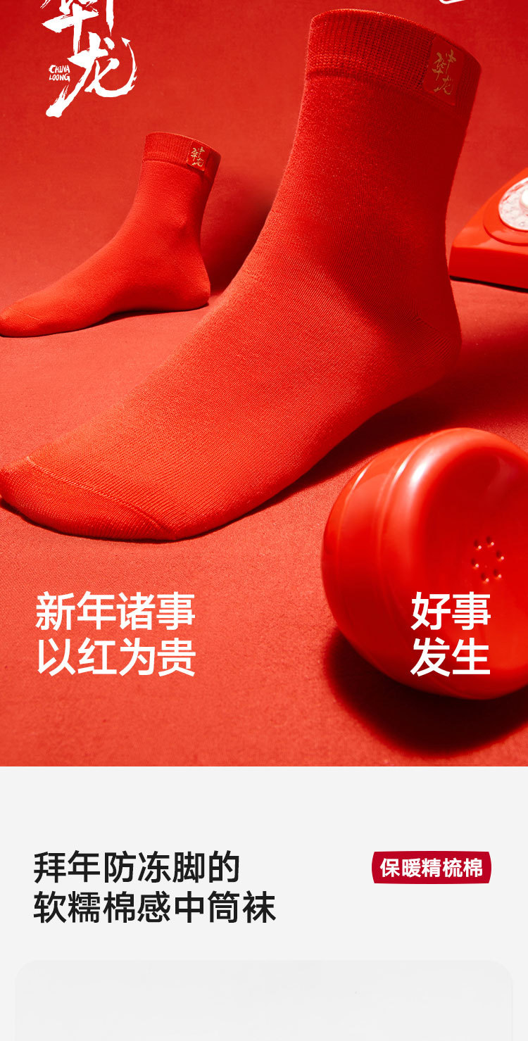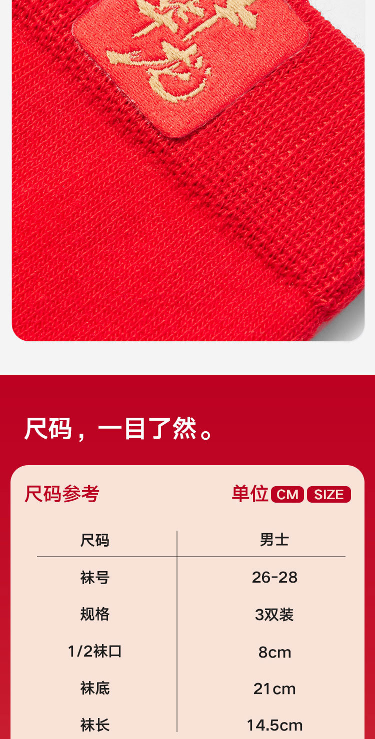 商品名称:【100%纯棉】3双装男士本命蛇年中筒袜红色抑菌消臭透气袜子 035674