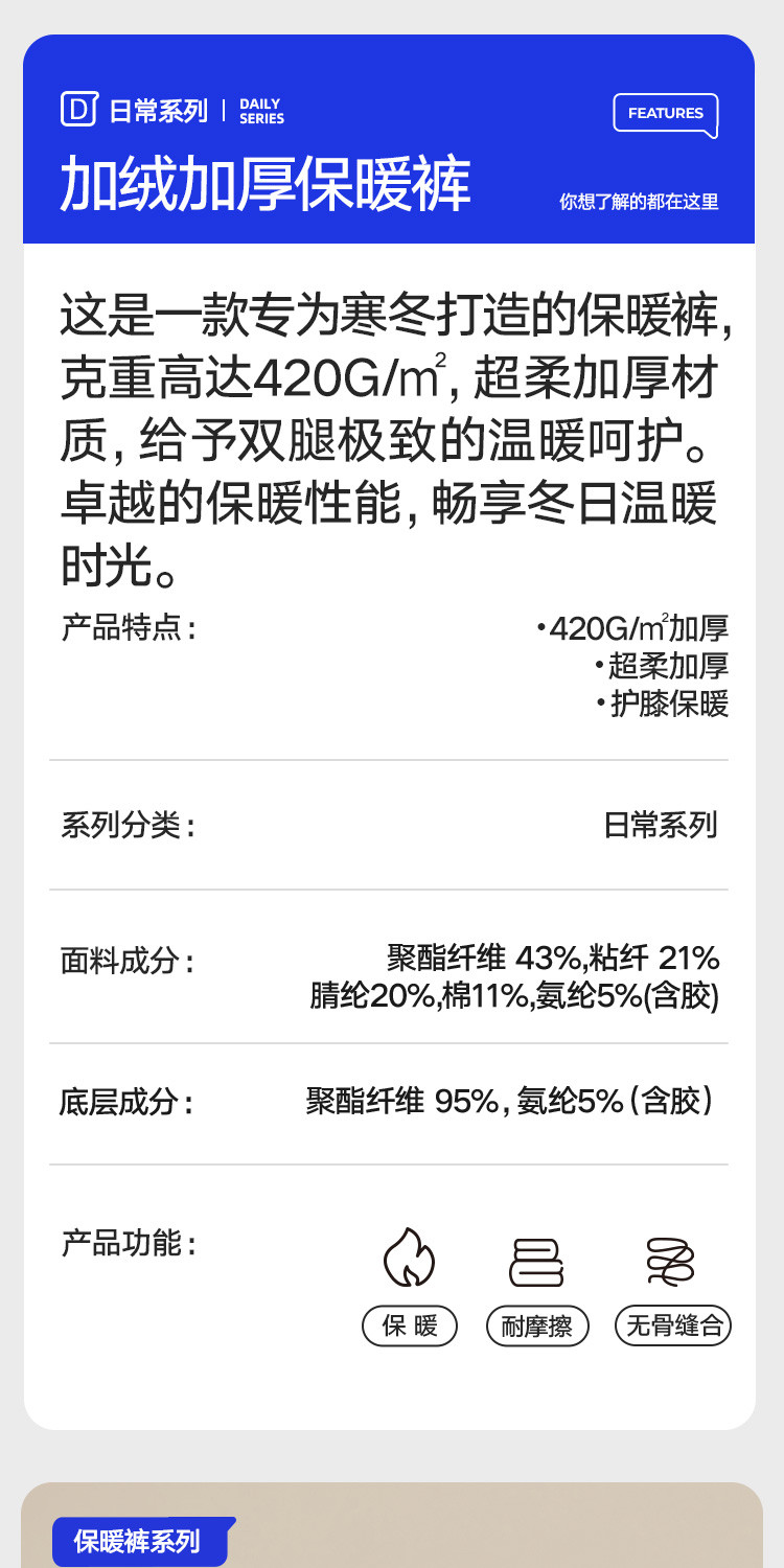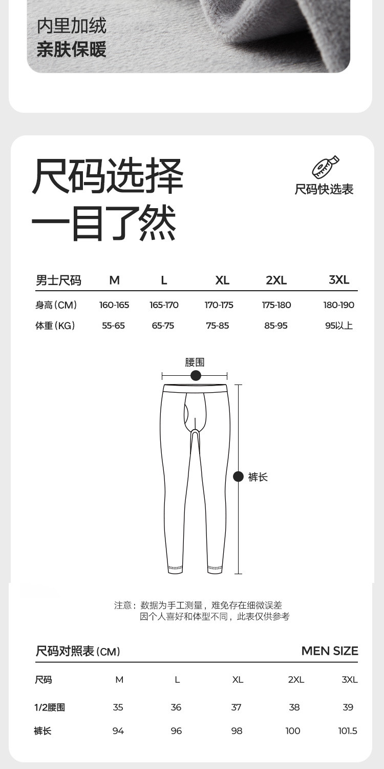 商品名称:【德绒蓄热 加绒加厚】男士秋裤单件冬季绒裤线裤东北保暖裤内穿 747098