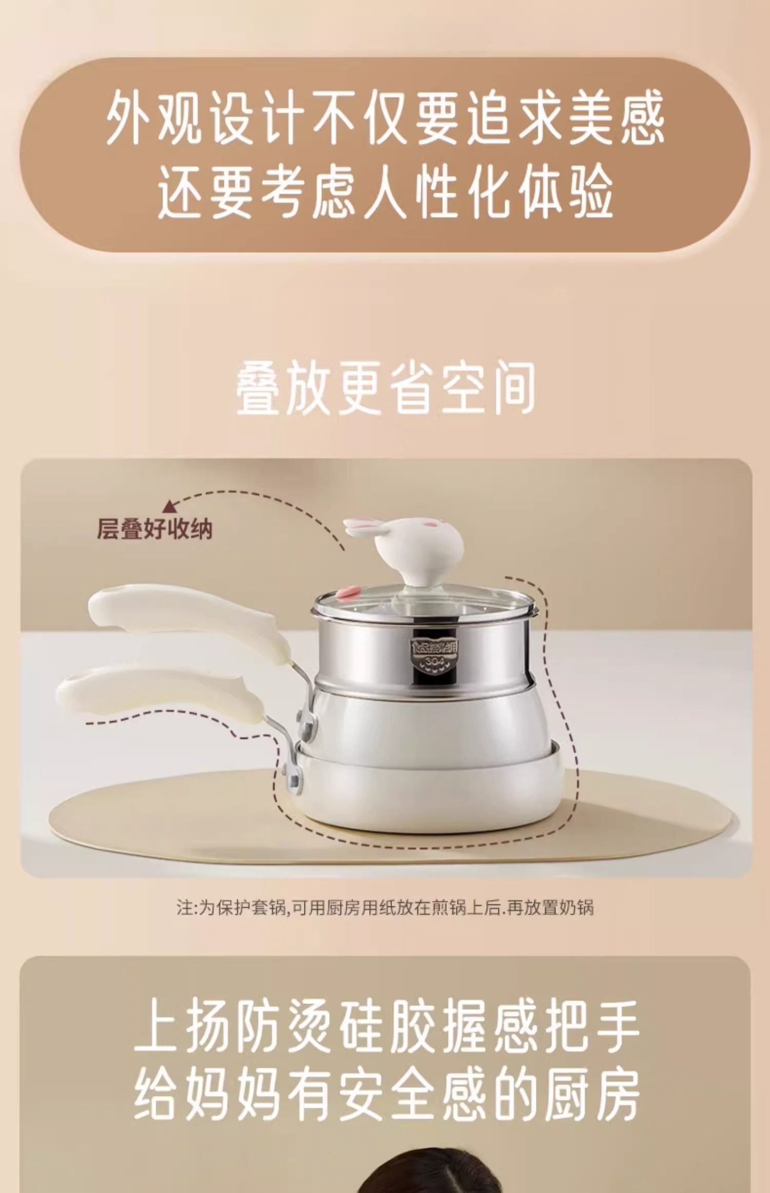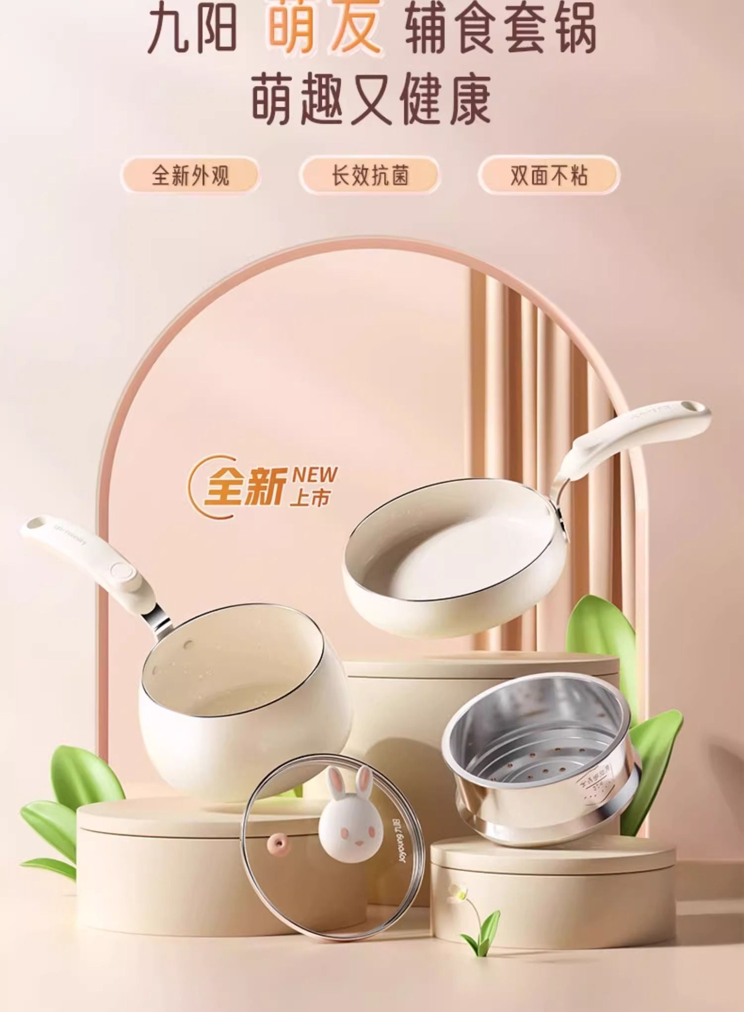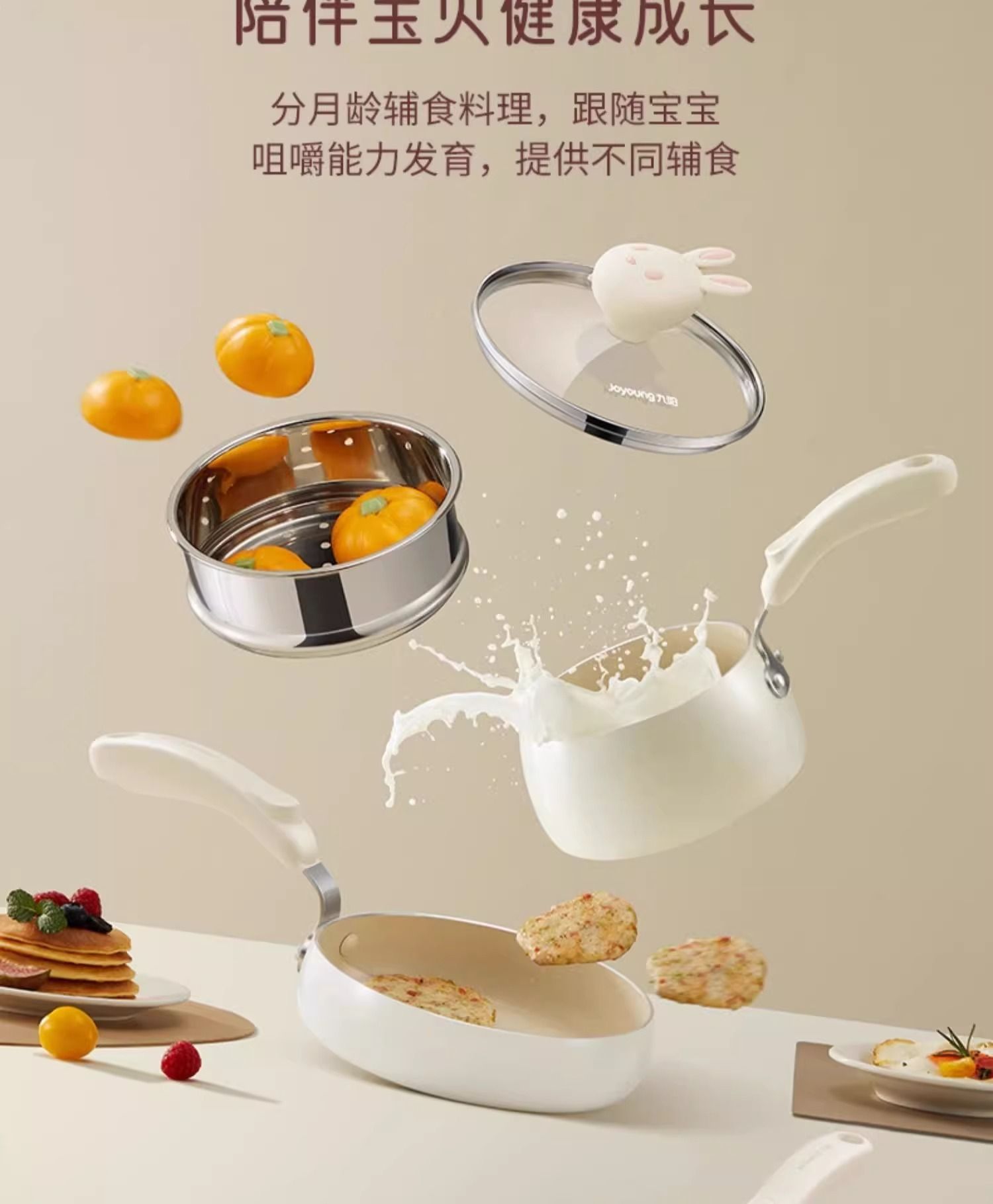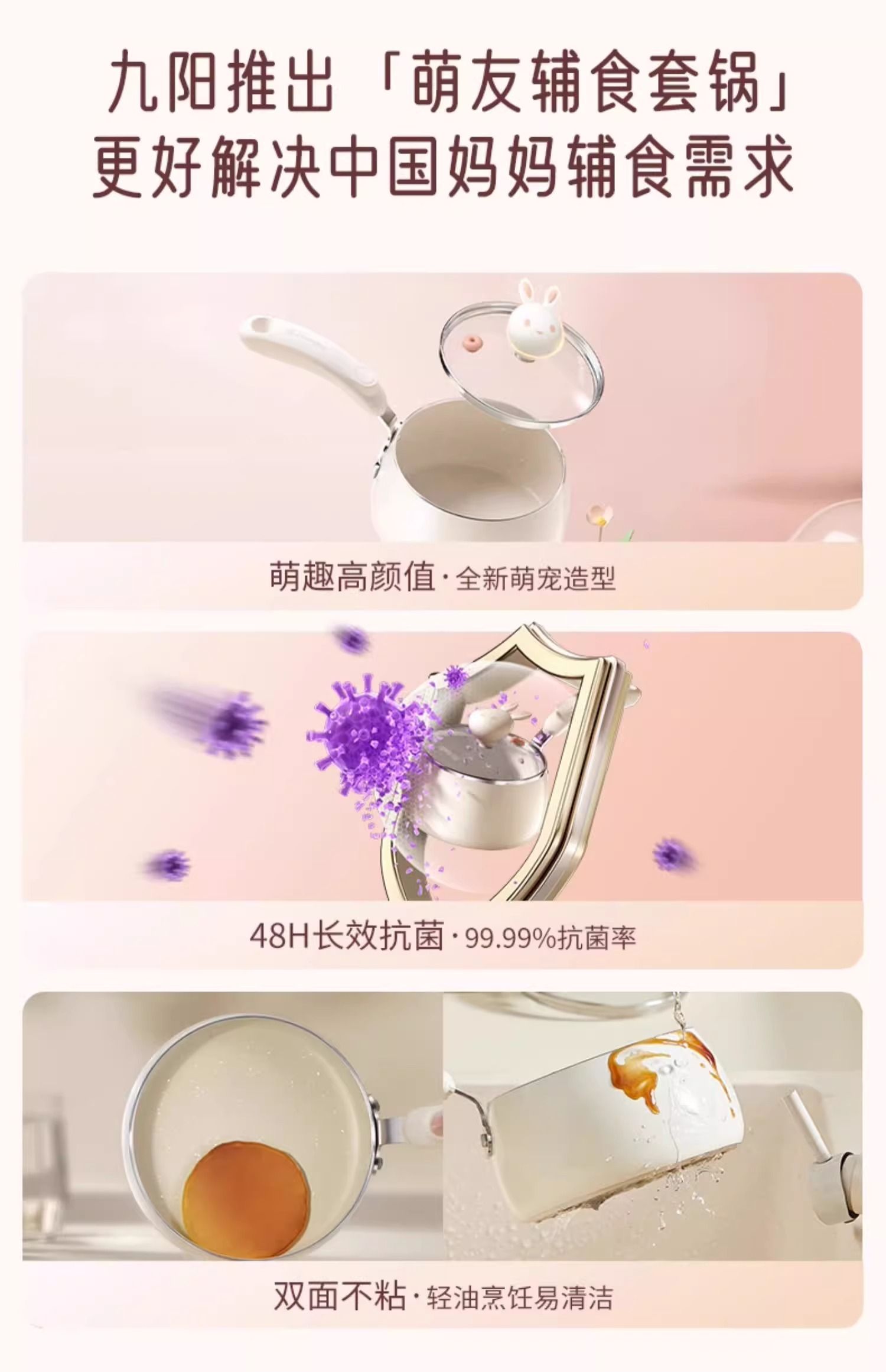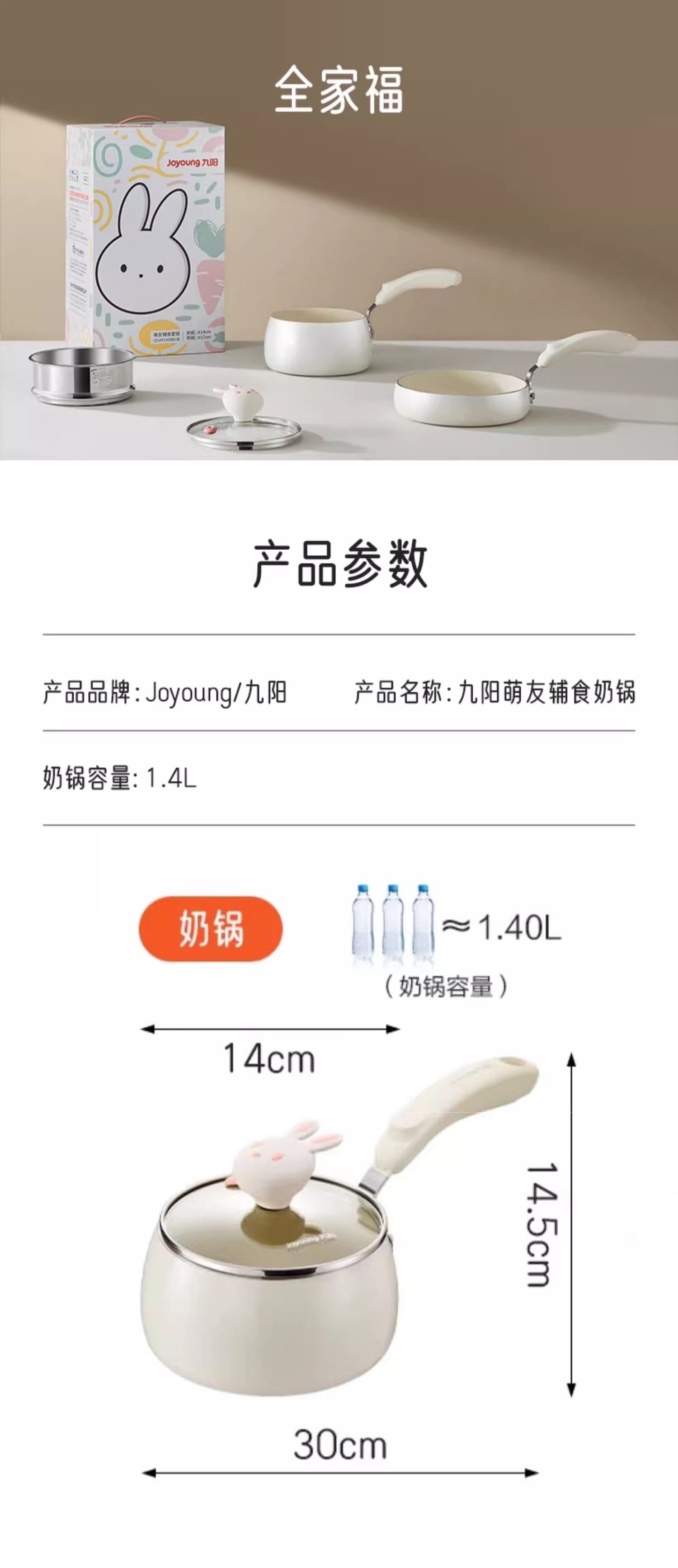 九阳萌友辅食奶锅CF14T-CN580(LB) 宝宝专用辅食锅1.4L炖煮双面不粘抗菌奶锅 单个奶锅