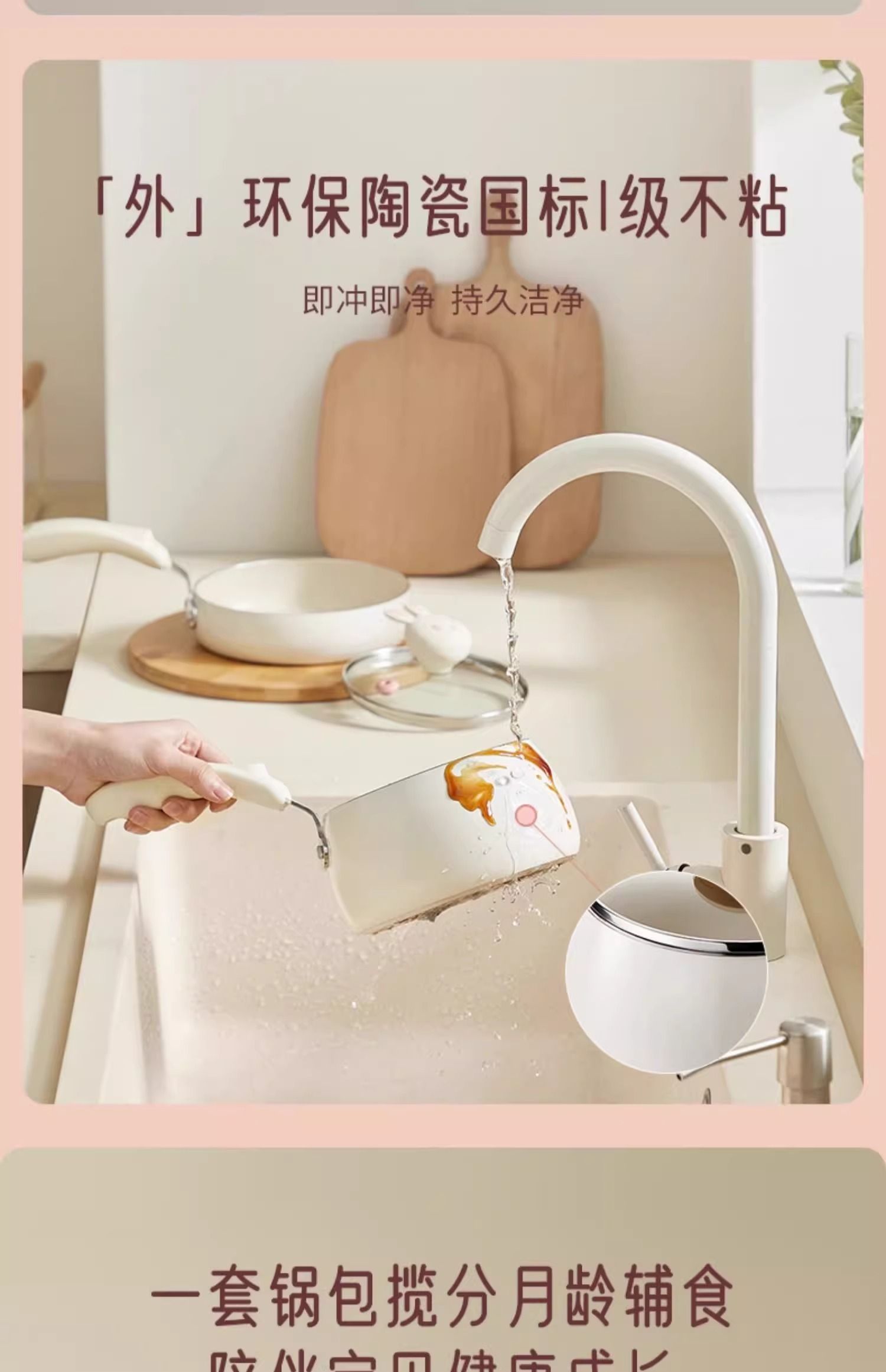 商品名称:九阳萌友辅食奶锅CF14T-CN580(LB) 宝宝专用辅食锅1.4L炖煮双面不粘抗菌奶锅 单个奶锅