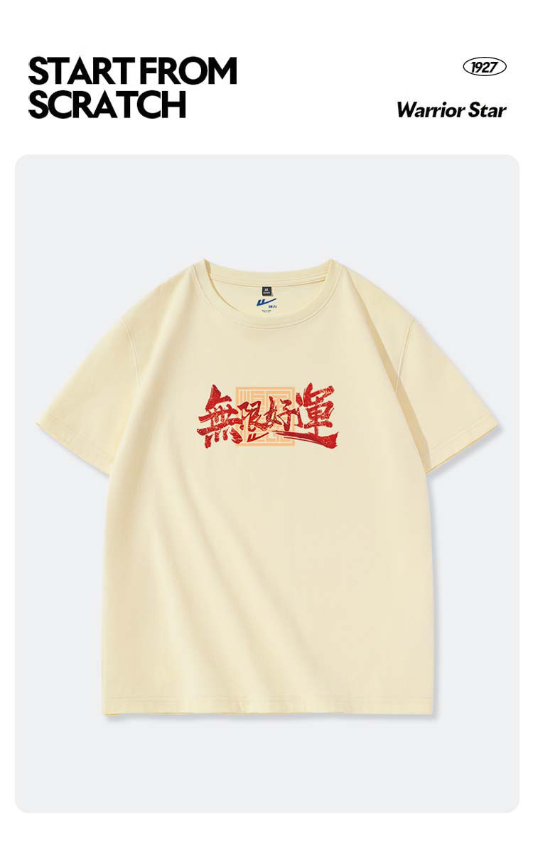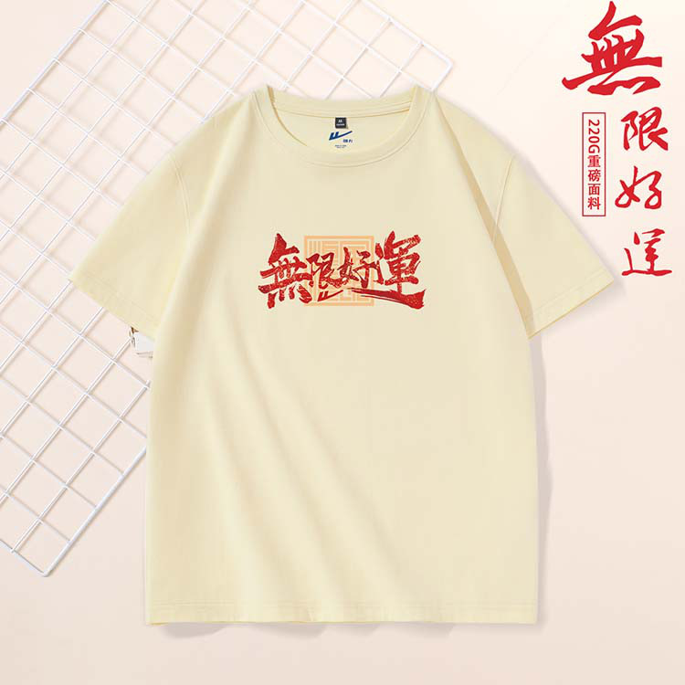 【重磅纯棉】国潮短袖t恤男夏季宽松透气男女同款无限好运半袖 994131