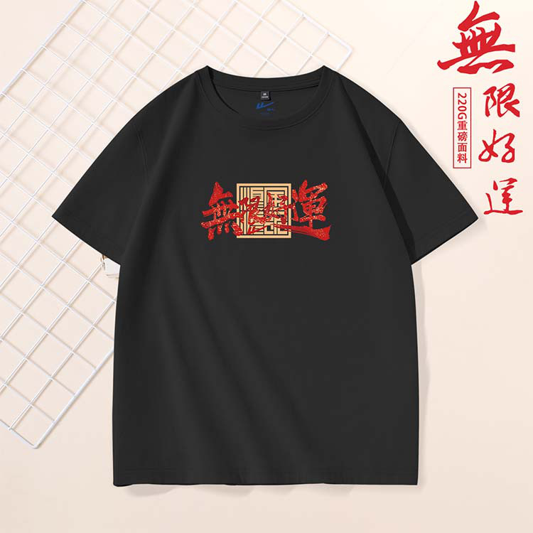商品名称:【重磅纯棉】国潮短袖t恤男夏季宽松透气男女同款无限好运半袖 994131