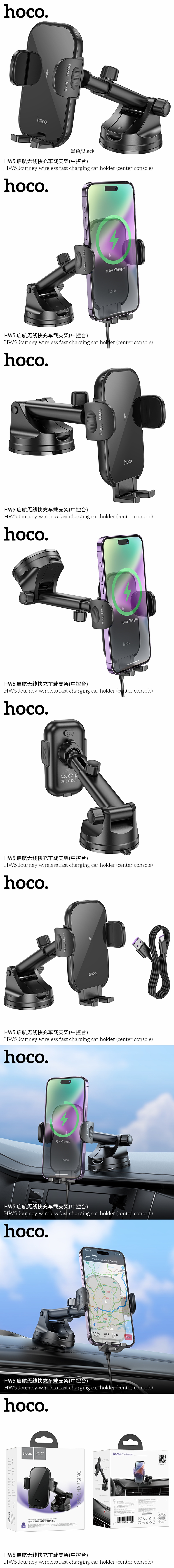 商品名称:hoco. 启航无线快充车载支架(中控台)HW5黑色