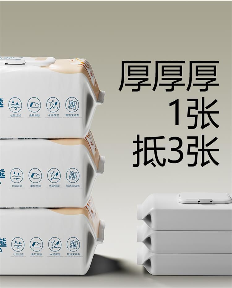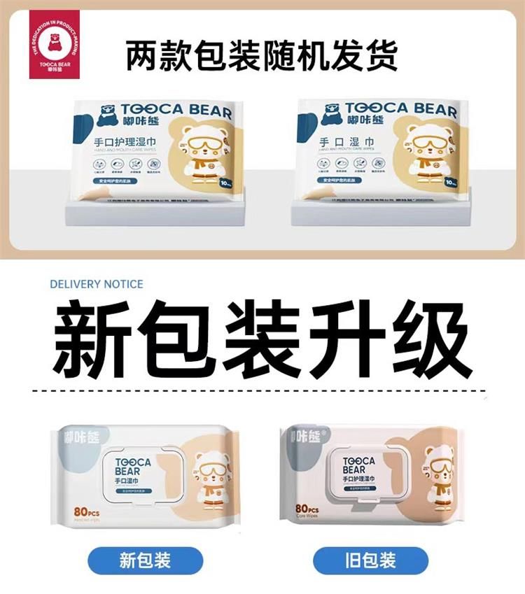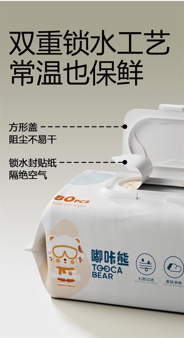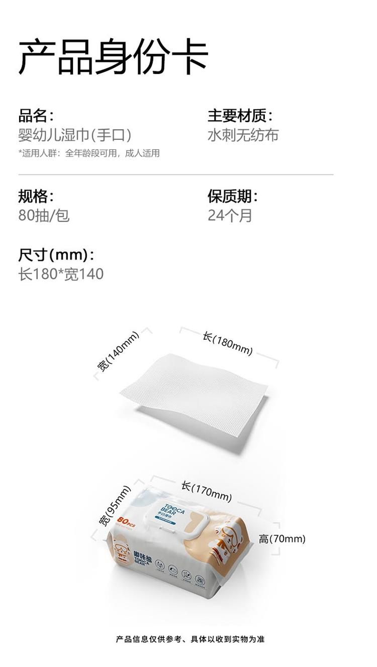 商品名称:嘟咔熊手口湿巾80抽10包家庭装-马卡龙系列