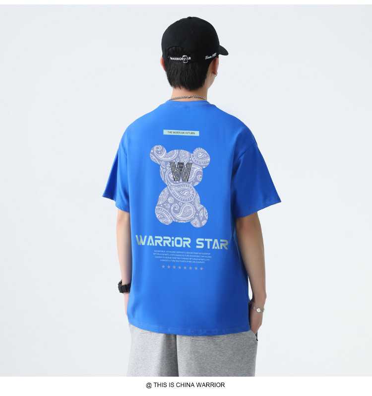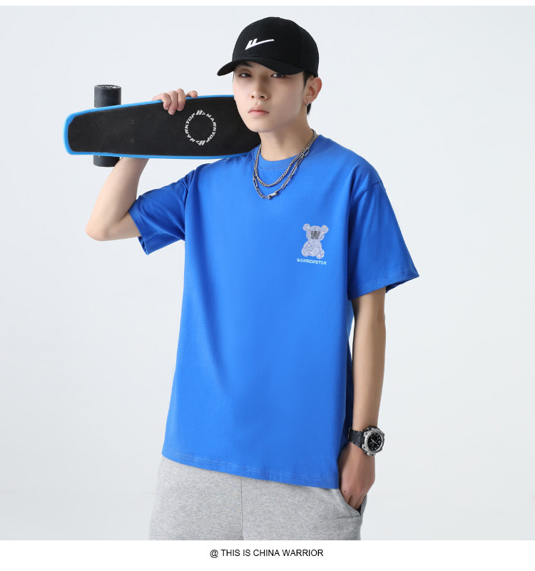 【220克重磅】t恤短袖男青少年国潮熊猫针织上衣宽松纯棉体恤 401619