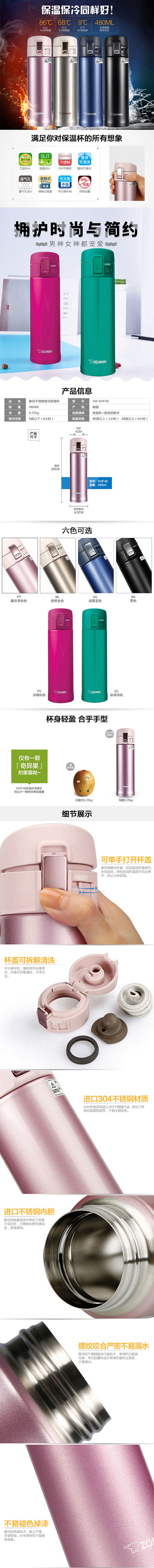 商品名称:象印 不锈钢无涂层真空保温杯 480ML SM-KHF48