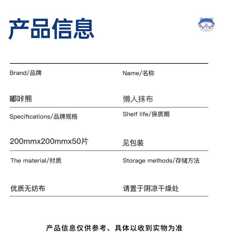 商品名称:嘟咔熊一次性抹布易撕不易变形可水洗50片