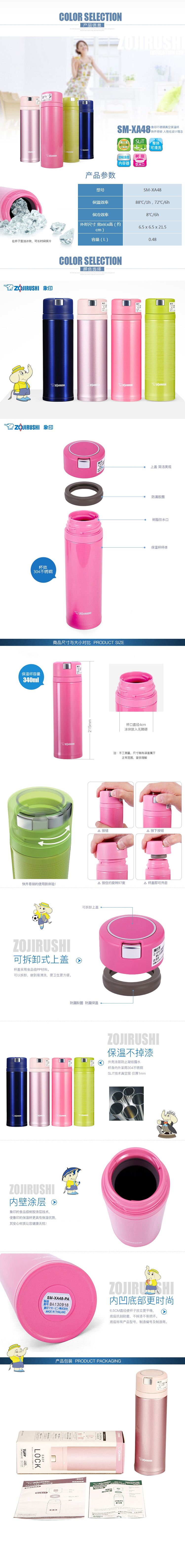 商品名称:象印 快开易锁不锈钢真空保温杯 480ML SM-XA48