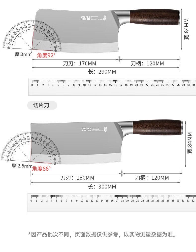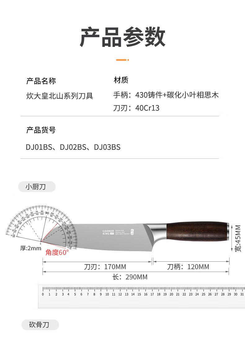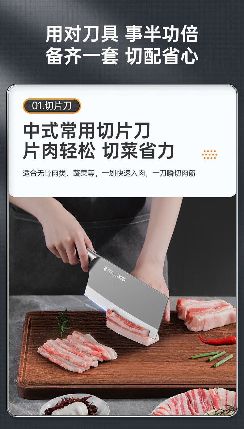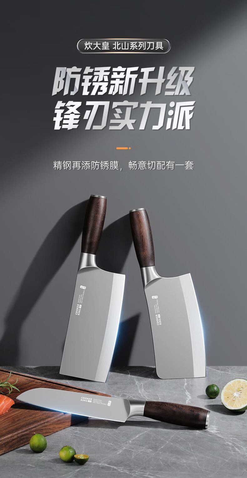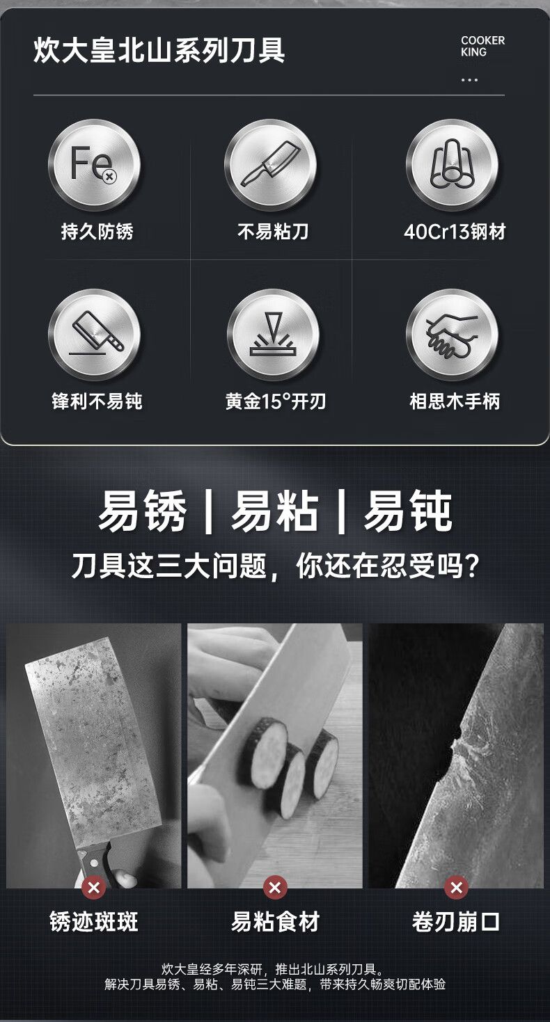 商品名称:炊大皇北山切片刀小厨刀砍骨刀 家用厨房不锈钢切菜刀切肉刀切片刀不易粘刀更防锈