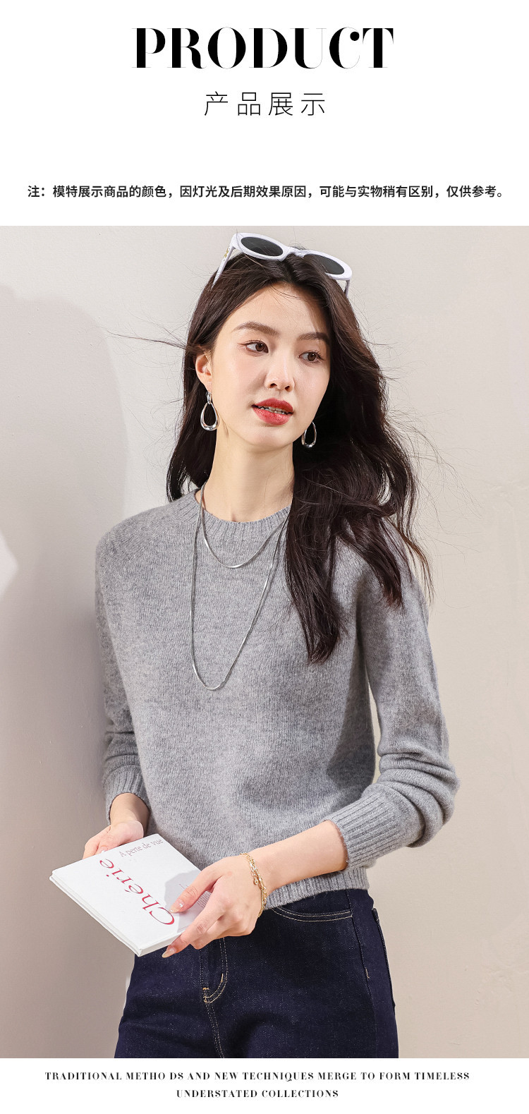 商品名称:【100%绵羊毛】春季无缝圆领纯羊毛本命年毛衣针织羊毛衫女 283859