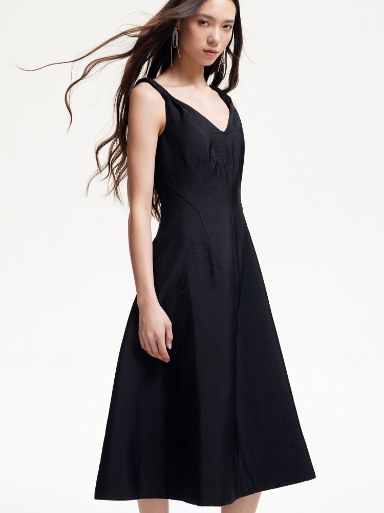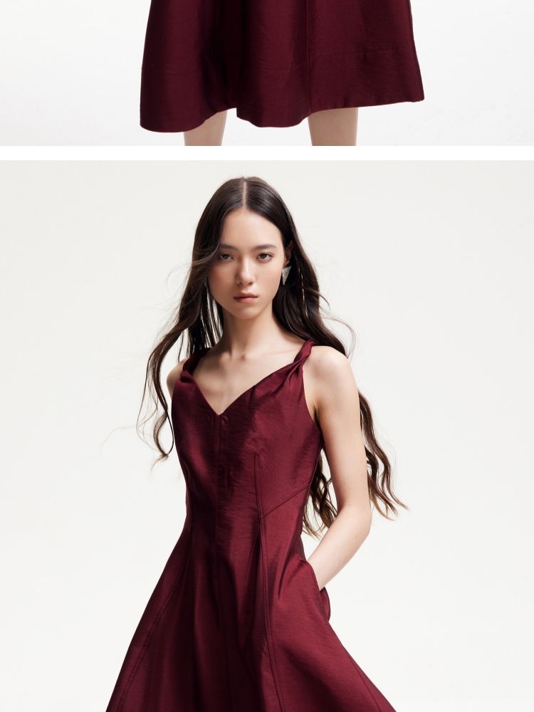 商品名称:【吊带中长裙】夏季优雅收腰伞裙V领吊带连衣裙女 471450