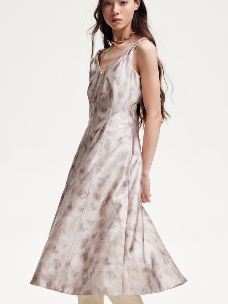 【吊带中长裙】夏季优雅收腰伞裙V领吊带连衣裙女 471450